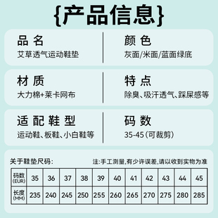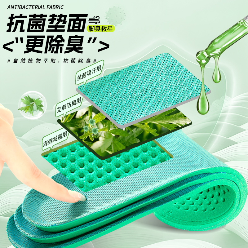 艾草除臭增高鞋 不累脚隐形内增高吸汗防臭女士运动气垫减震 垫男款