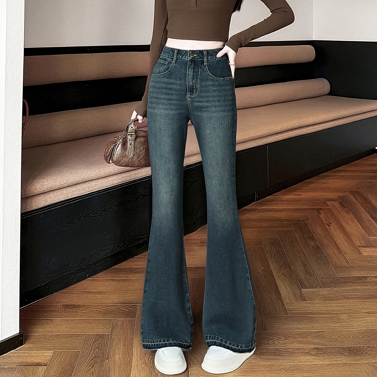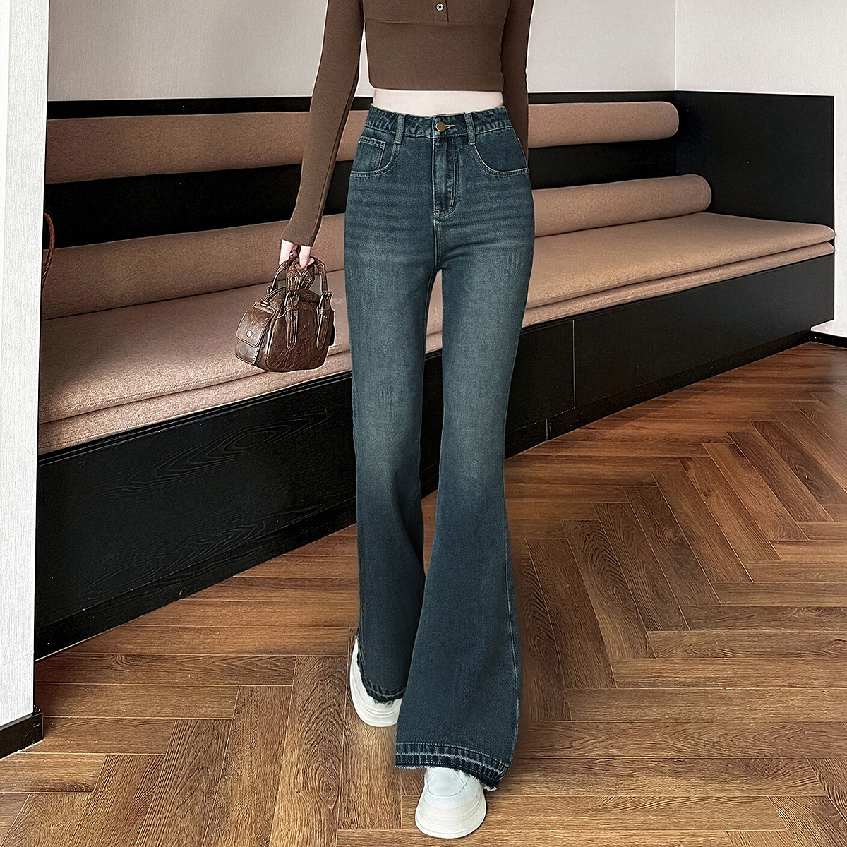 毛边设计高级感百搭弯刀裤 唐狮秋冬季 修身 女微喇叭裤 潮tu 牛仔长裤