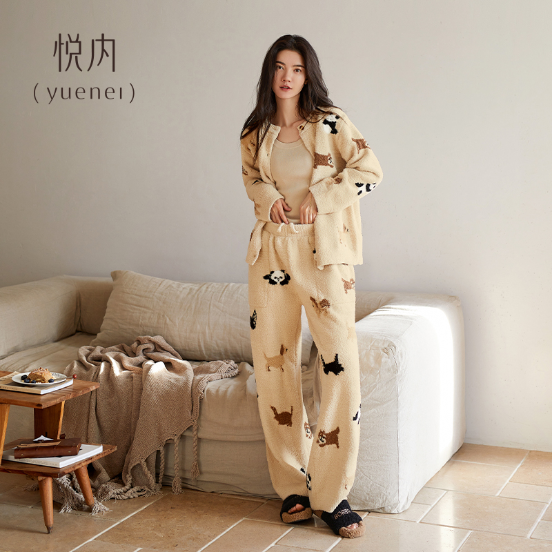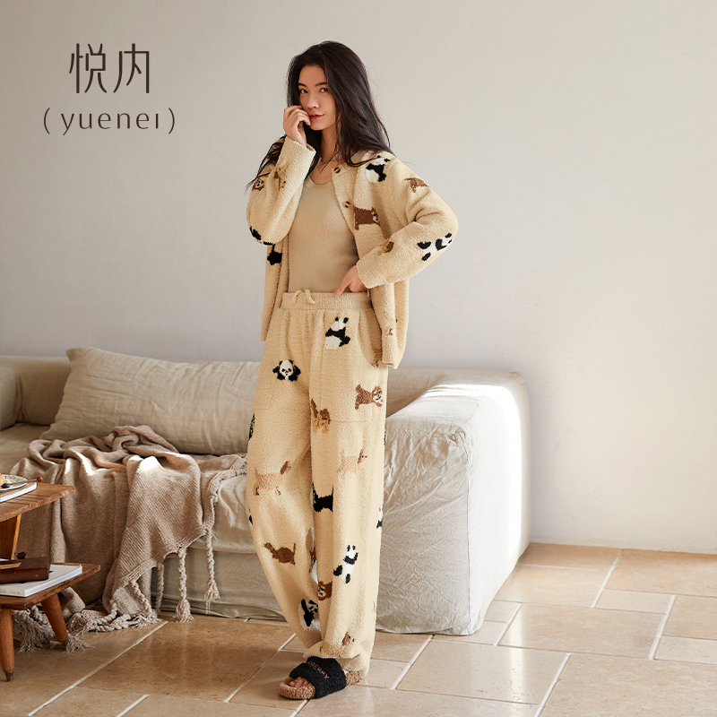 保暖法兰绒家居服套装 南极人珊瑚绒女睡衣加绒加厚冬季 女2025新款