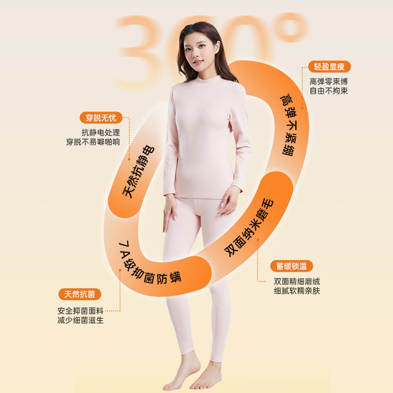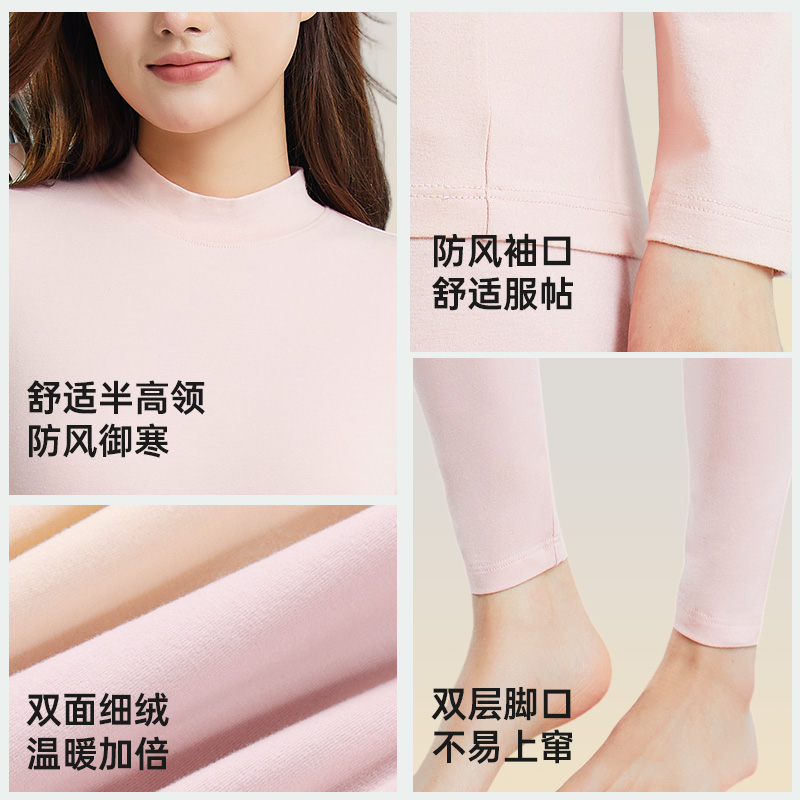 女磨毛保暖套装 打底衫 2025新款 新一系纯棉保暖内衣半高领秋衣秋裤