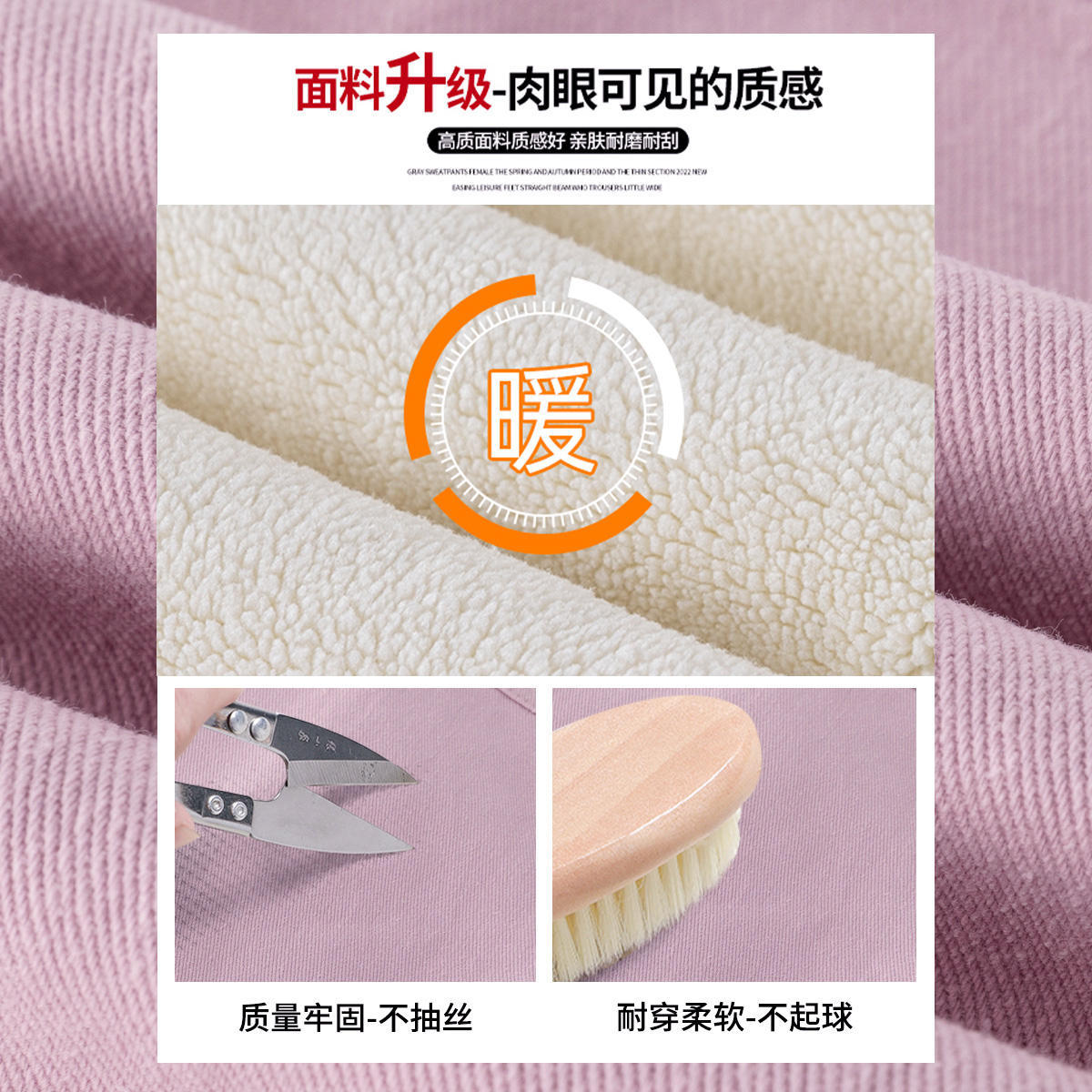 加绒街舞穿搭褶皱宽松休闲长裤 女秋冬季 子 灰色运动卫裤 自然涩美式
