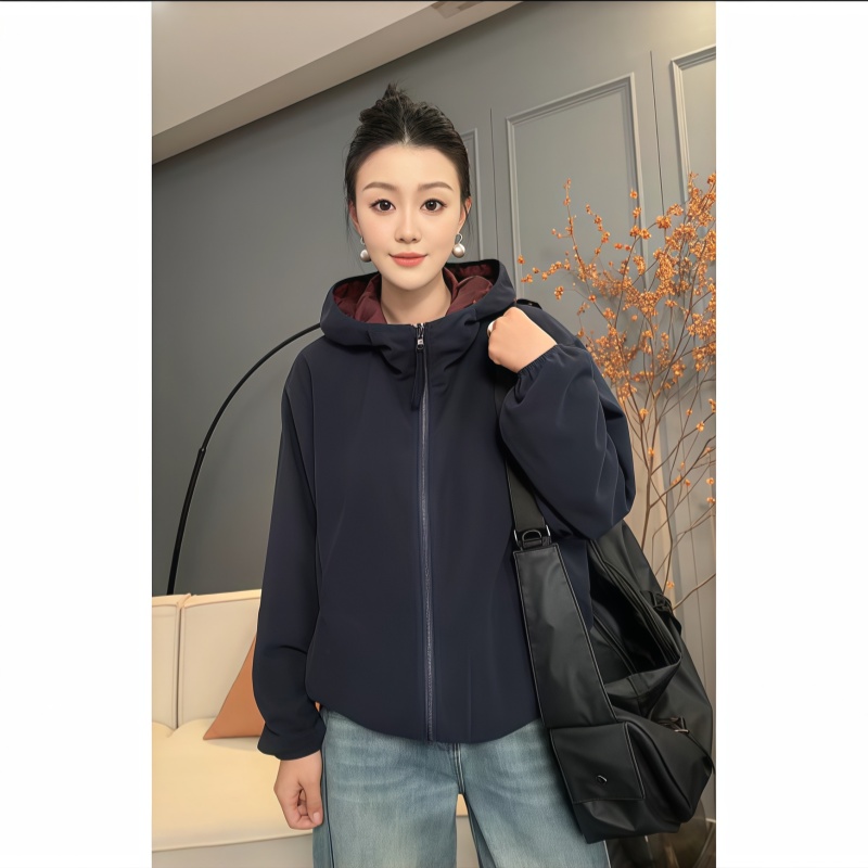 2025秋冬新款 休闲连帽加绒双面穿外套休闲冲锋衣上衣女潮 洋气时尚