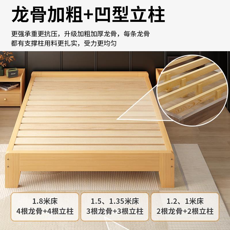 无床头床透气防潮排骨架实木榻榻米床出租房民宿风家用矮床板式 床
