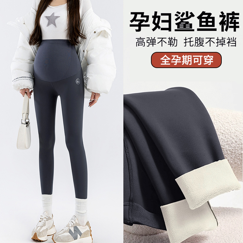 装 托腹保暖打底裤 外穿 春秋冬加绒加厚瑜伽休闲宽松大码 孕妇鲨鱼裤