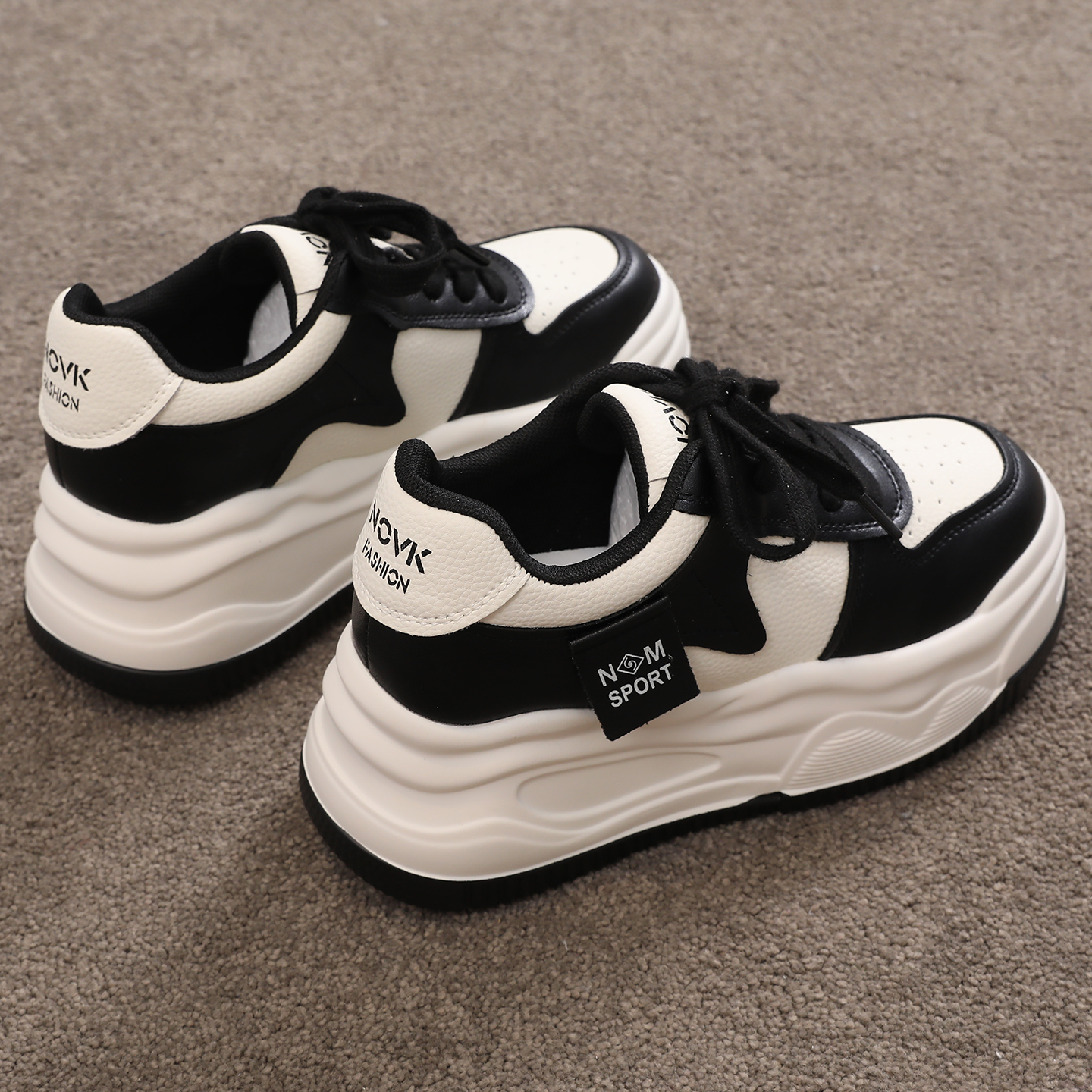 女厚底女鞋 黑白加绒板鞋 新款 透气休闲鞋 小个子运动鞋 内增高小白鞋