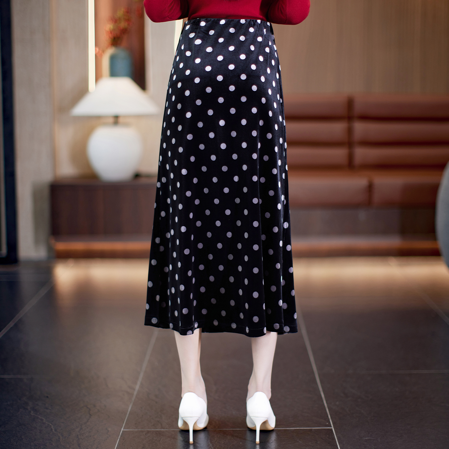 娅丽达松紧腰羊毛醋酸半身裙女秋冬2025新款 黑色裙子开叉直筒长裙