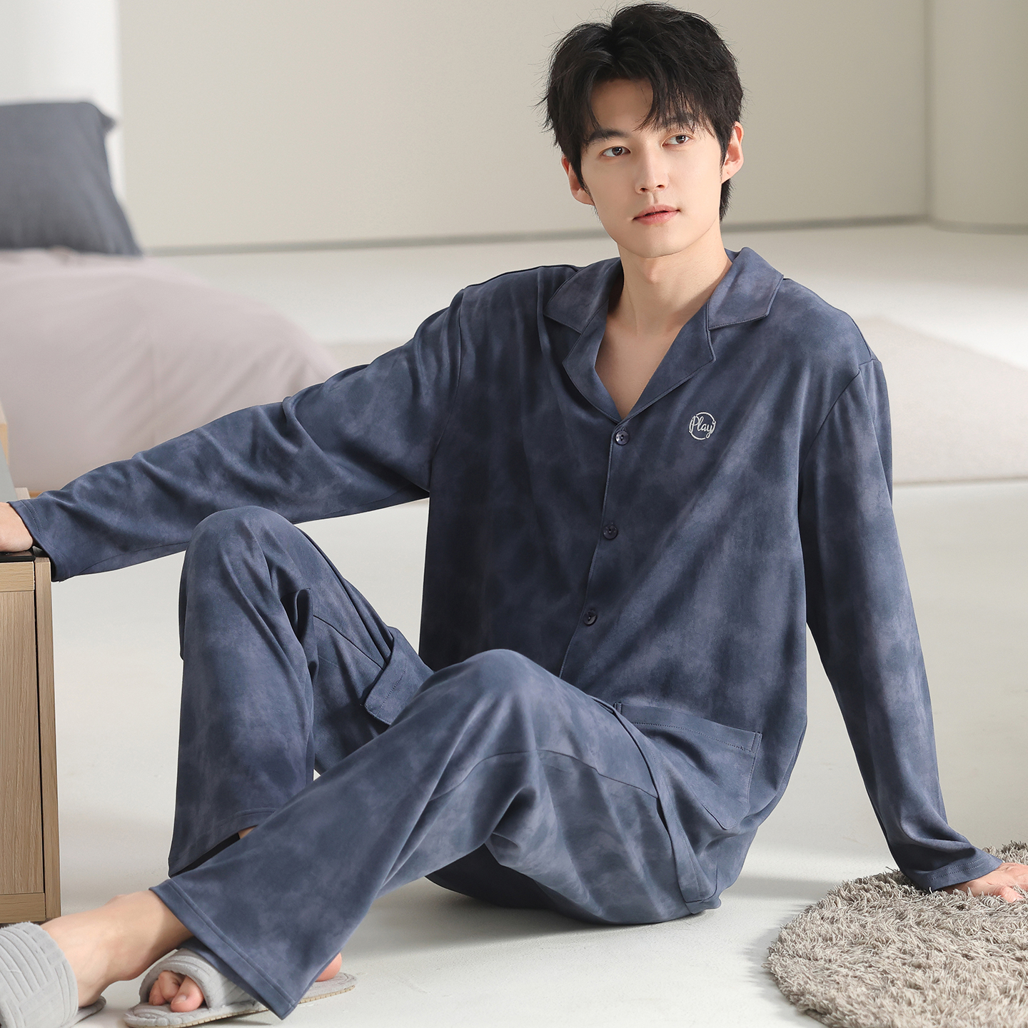 加厚纯棉蓝色男士 卡之恋男款 长袖 2025新款 大学生家居服冬 睡衣秋季