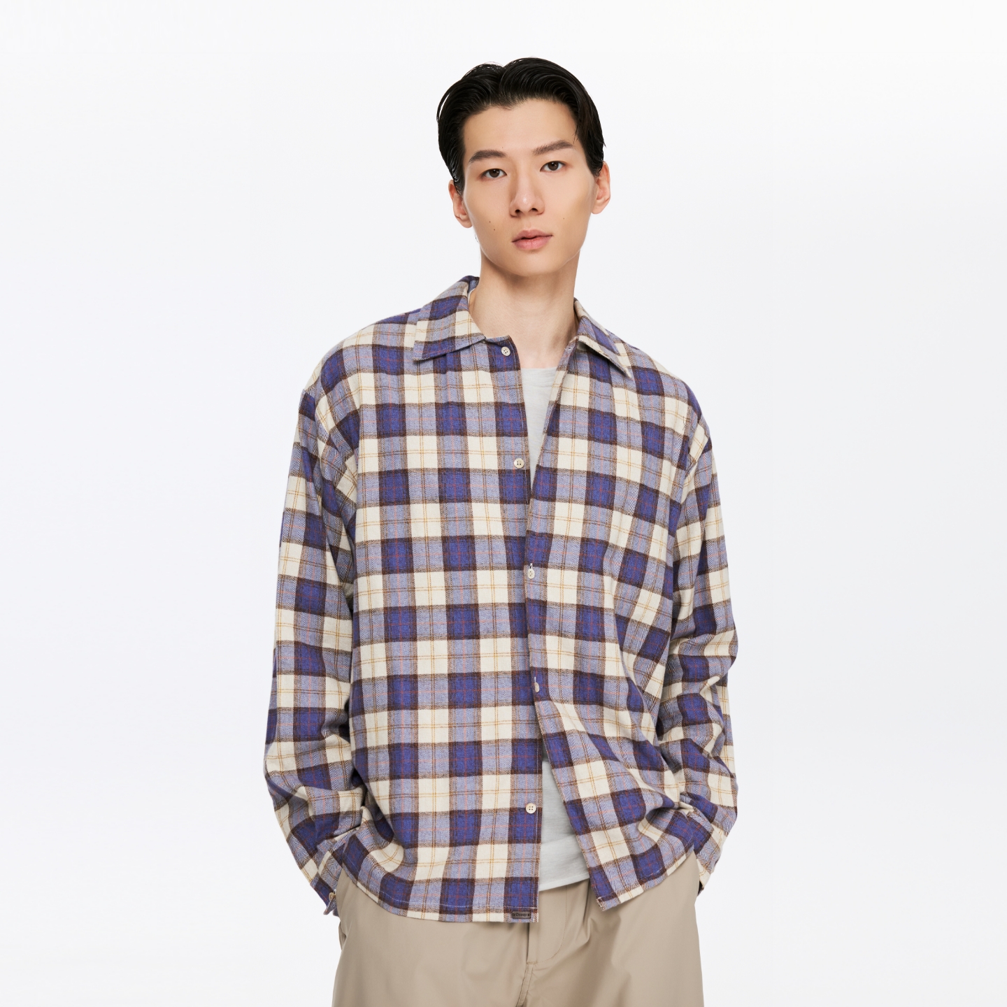 新款 男日系潮流秋季 纯棉宽松休闲廓形衬衣 衬衫 VR97泡泡纱条纹长袖