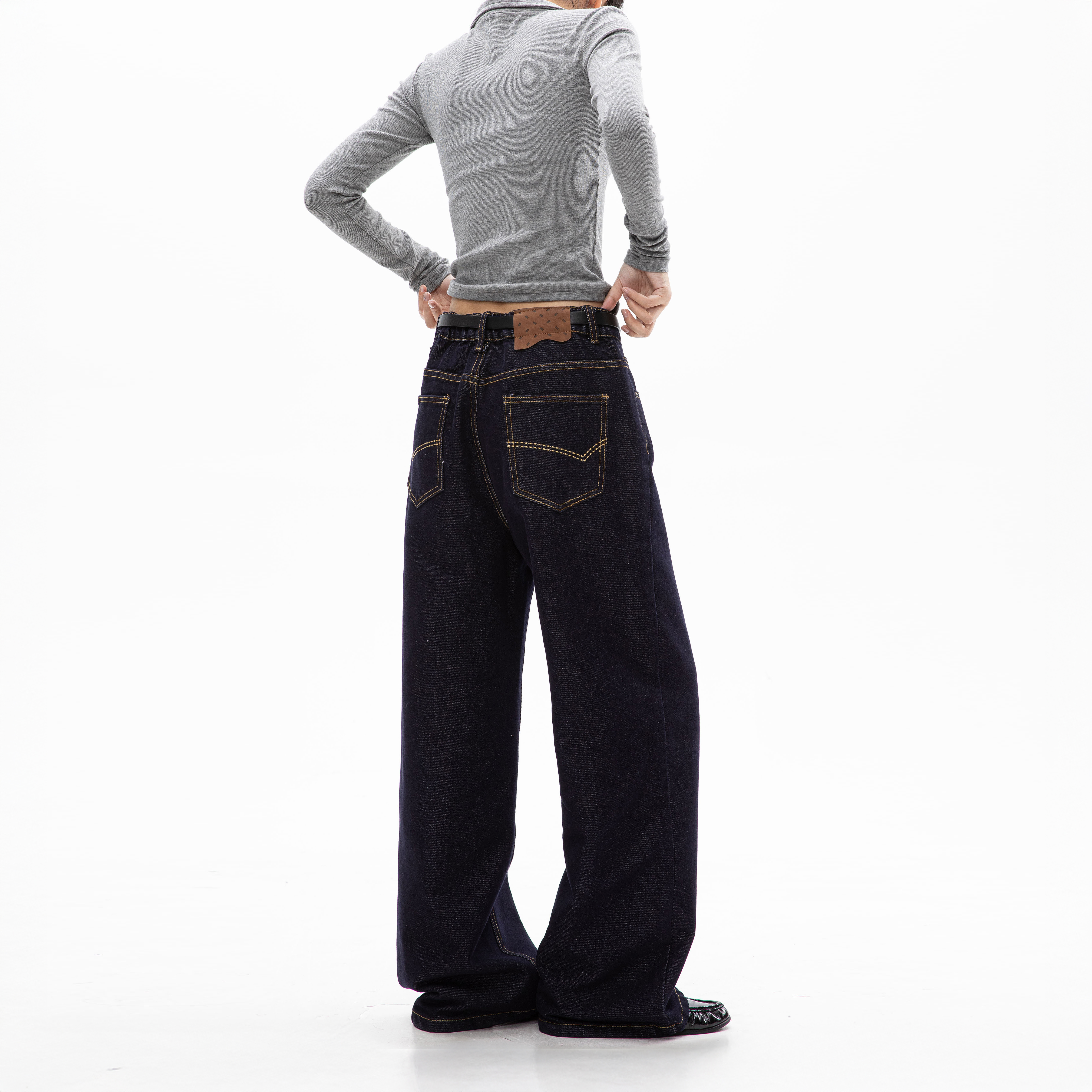 秋冬高腰休闲小个子丹宁蓝拖地直筒裤 深蓝色阔腿牛仔裤 女2025新款