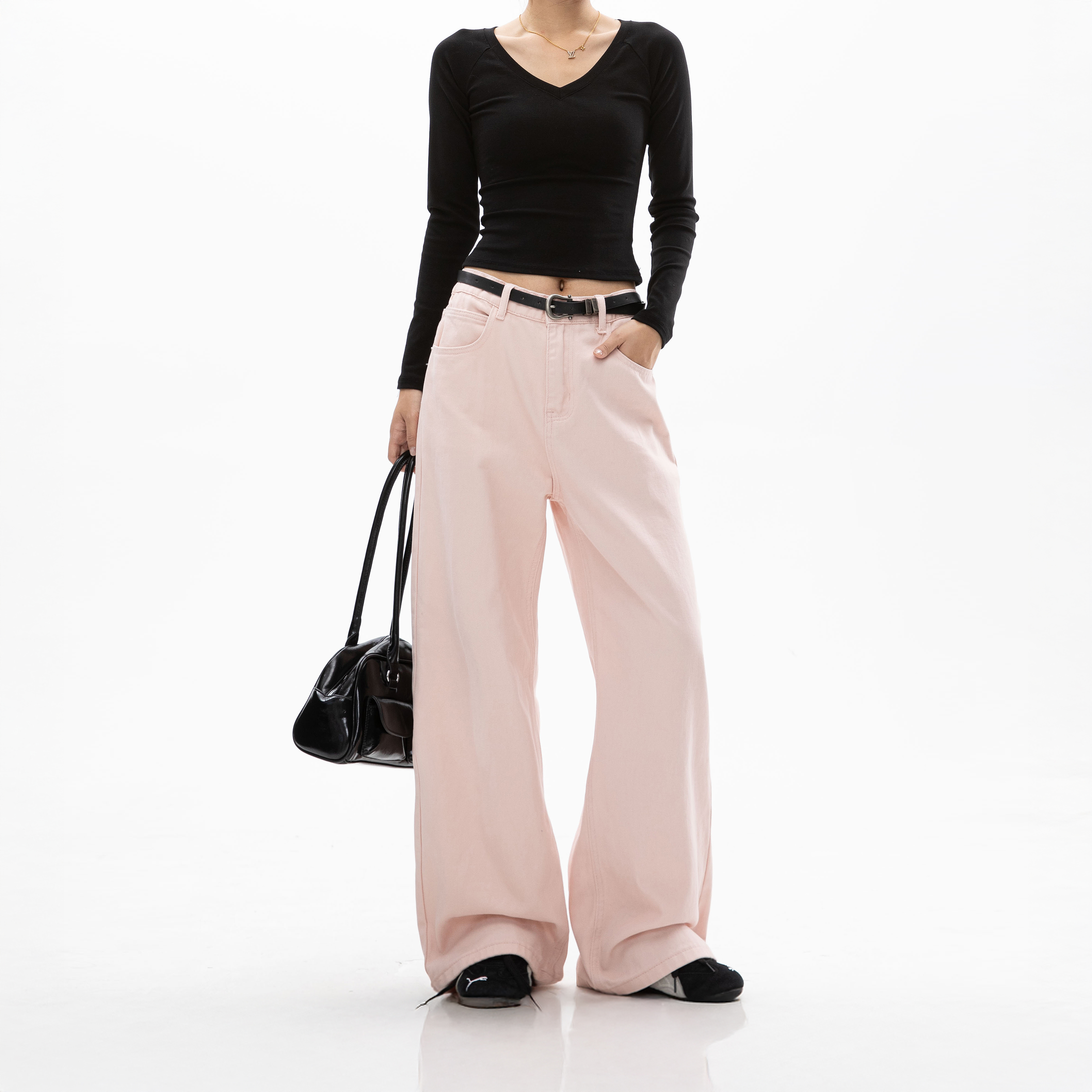 拖地裤 浅蓝色高腰阔腿牛仔裤 宽松直筒小个子窄版 新款 子夏 2025春季