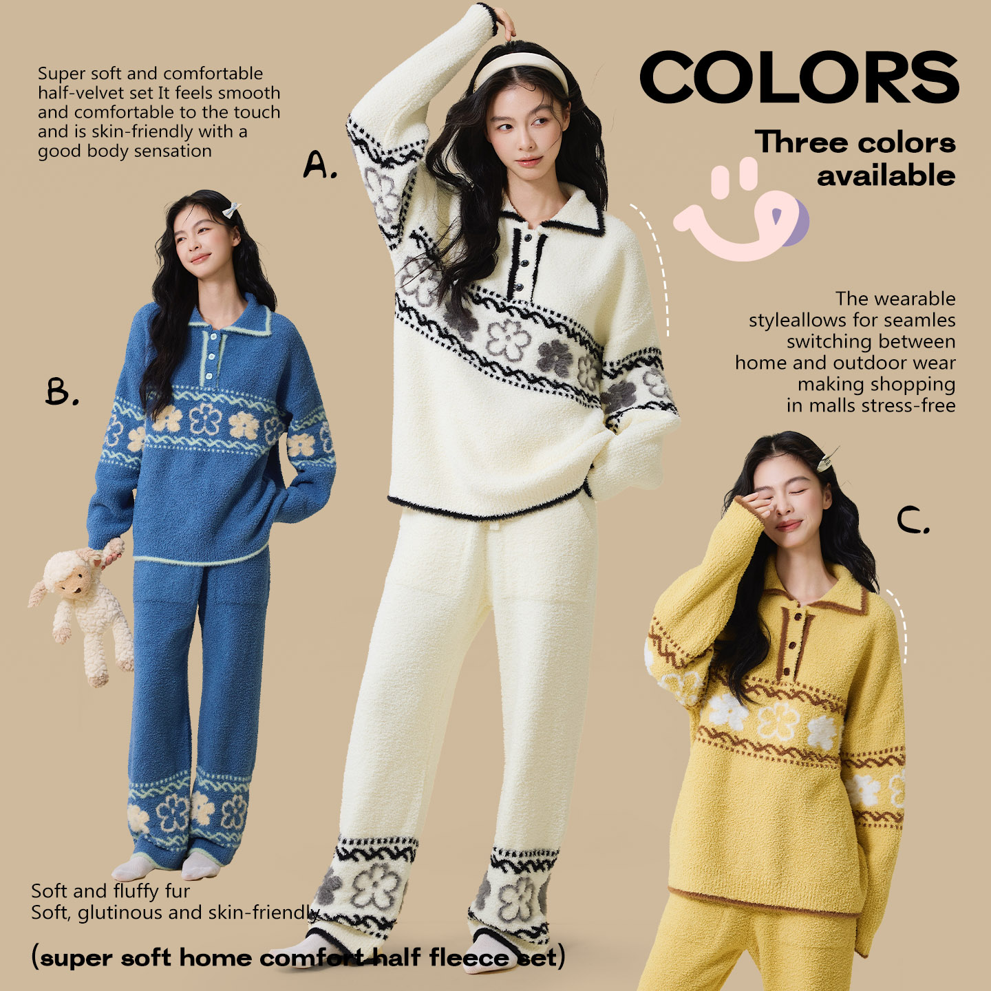 外穿珊瑚半边绒绝美家居服套装 2025新款 秋冬季 猫人费尔岛睡衣女款