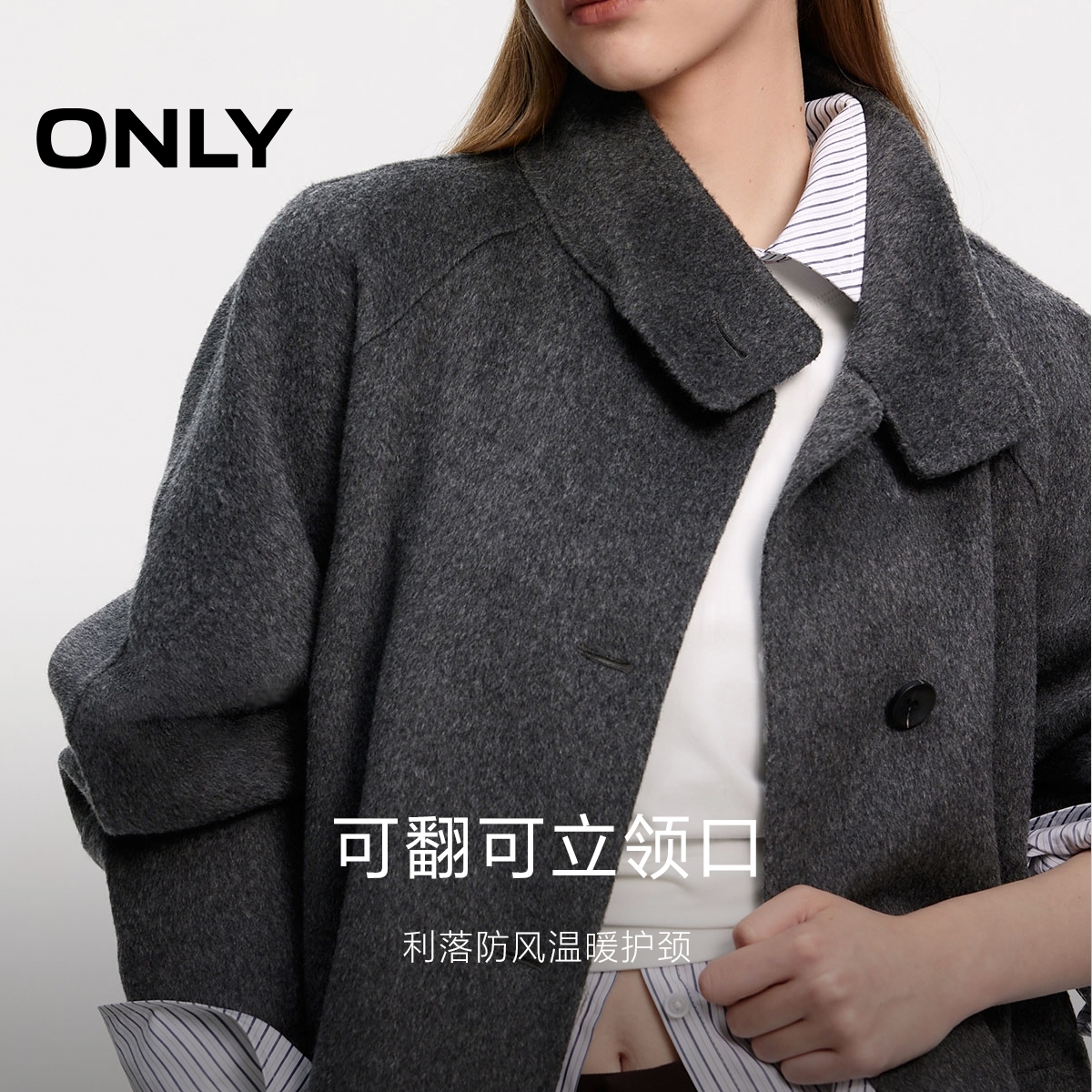 图曼朵灰色双面呢羊毛大衣女秋冬新款 毛呢短外套 高级感小个子短款