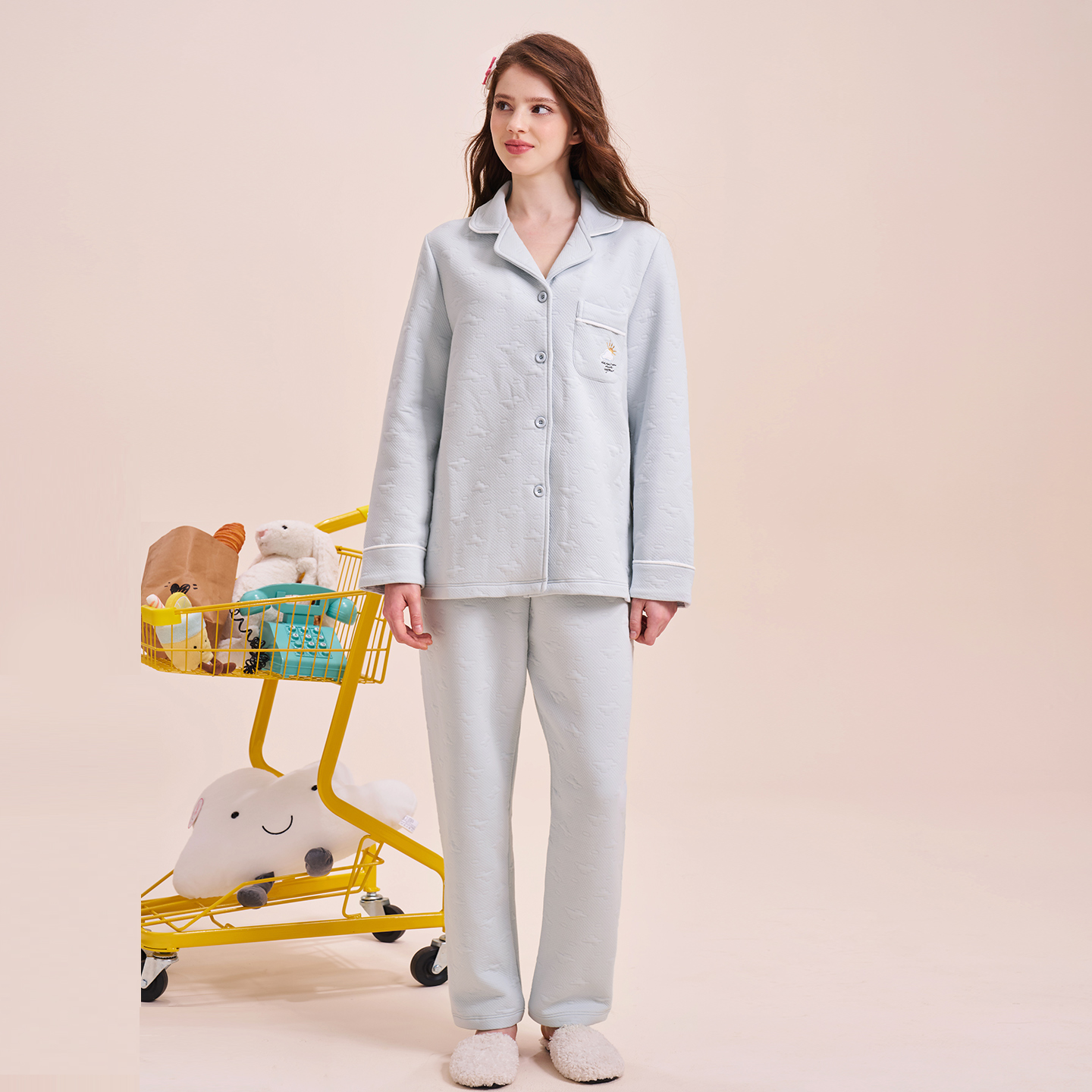 半边绒刺绣ins家居服套装 yso 新款 睡衣女冬季 花花梦园
