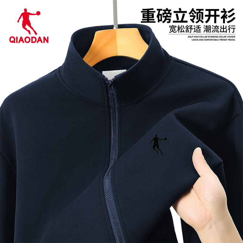 针织上衣立领夹克开衫 男装 卫衣休闲加绒运动服 新款 特步外套男秋季