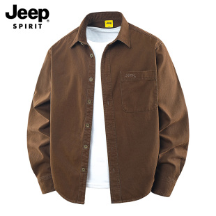 新款 春秋季 复古工装 灯芯绒夹克外套长袖 衬衣 回力衬衫 男士 外套男款