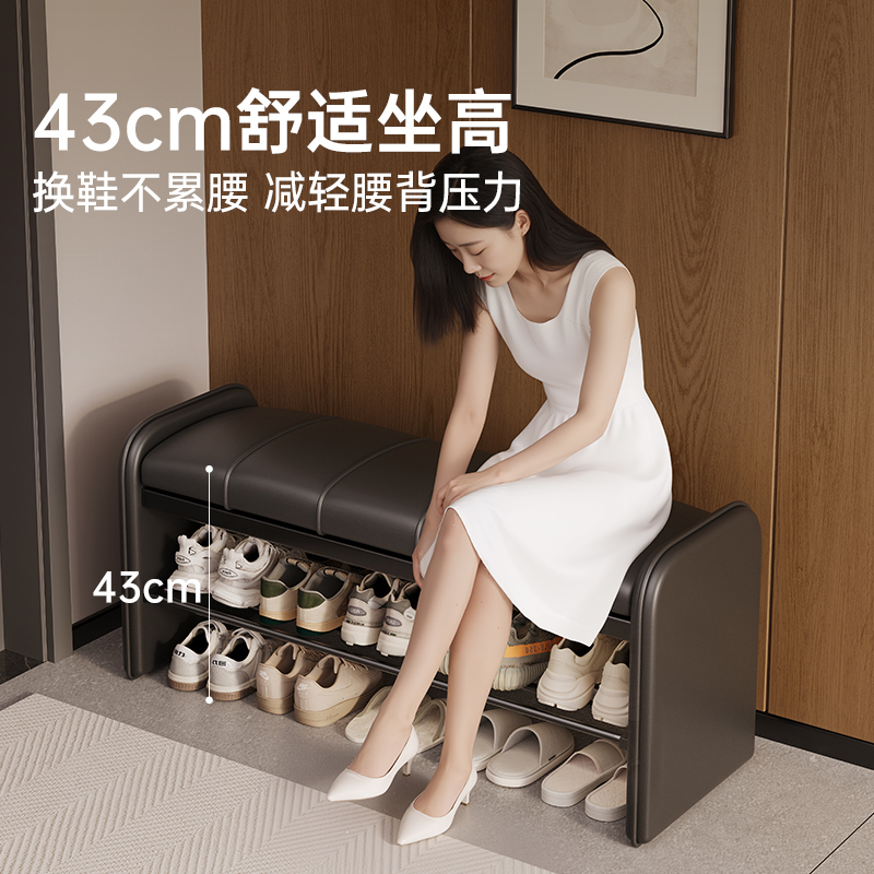 软包换鞋 凳一体凳 凳家用进门长条凳卧室入户多功能轻奢高级感穿鞋