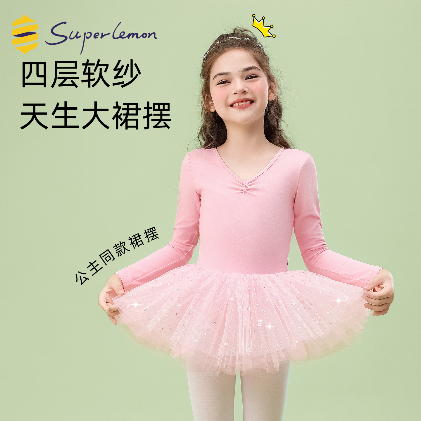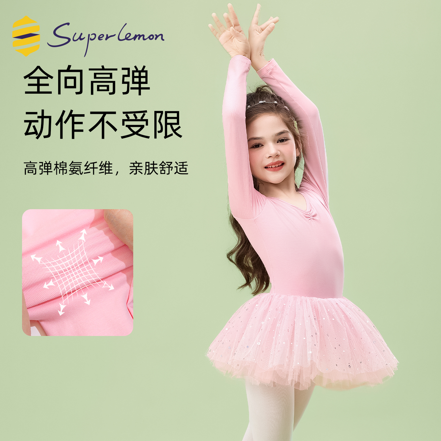 儿童舞蹈服女长袖 跳舞芭蕾舞裙演出服中国舞服纱裙 连体练功服新款