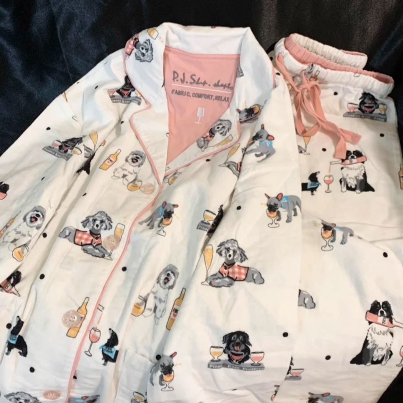 韩系秋款 睡衣套装 双面磨毛全棉西装 长裤 少女家居服 领长袖 100%棉