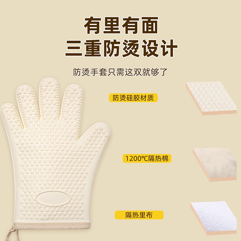 2025新款 防烫隔热手套加厚硅胶厨房烤箱专用烘培耐高温微波炉防滑