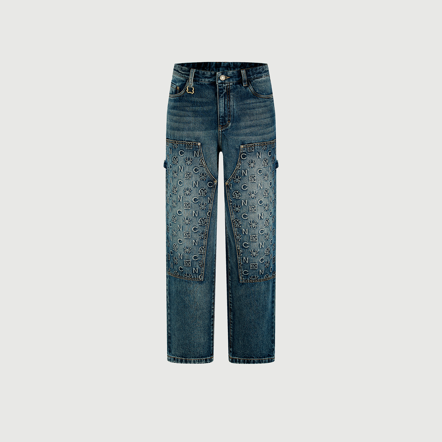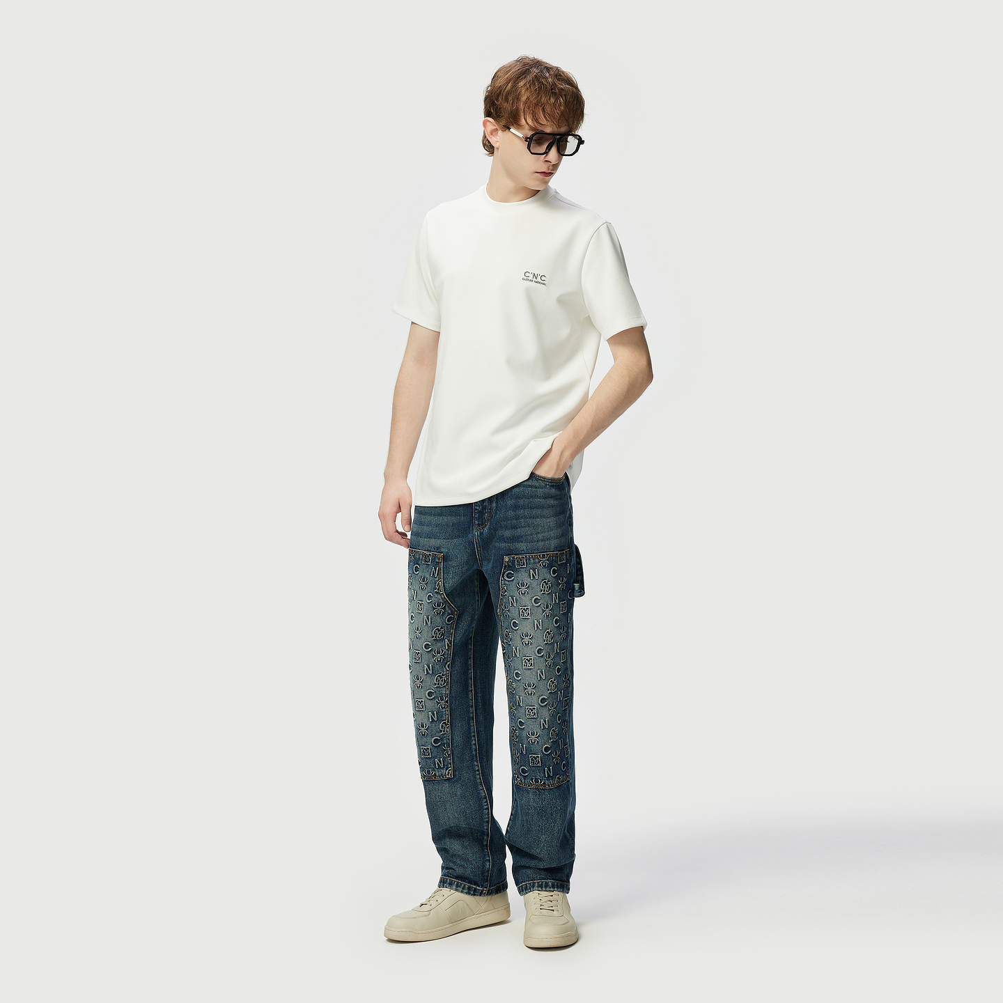 奥莱logo刺绣宽松牛仔裤 CNC男装 男秋冬轻奢设计感长裤 纯棉