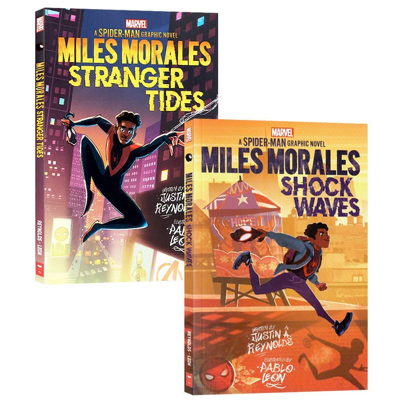 Waves 青少年课外英文阅读 漫画 漫威儿童漫画绘本故事书 Tides Stranger Shock Morales Miles 英文原版 蜘蛛侠原创漫画2册