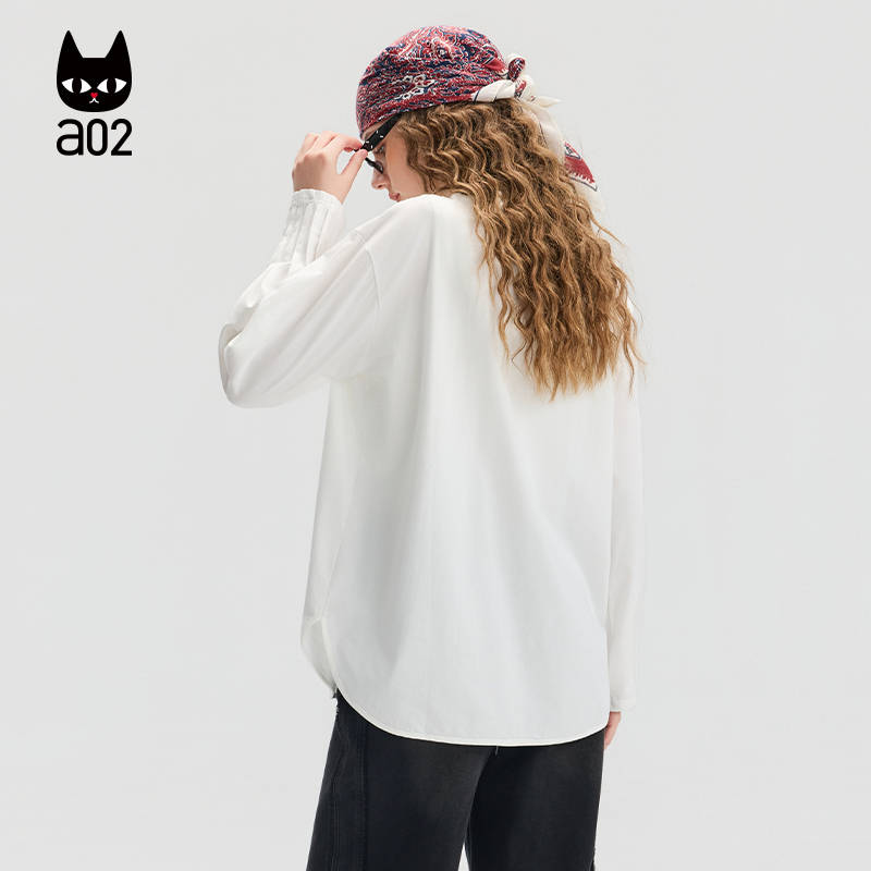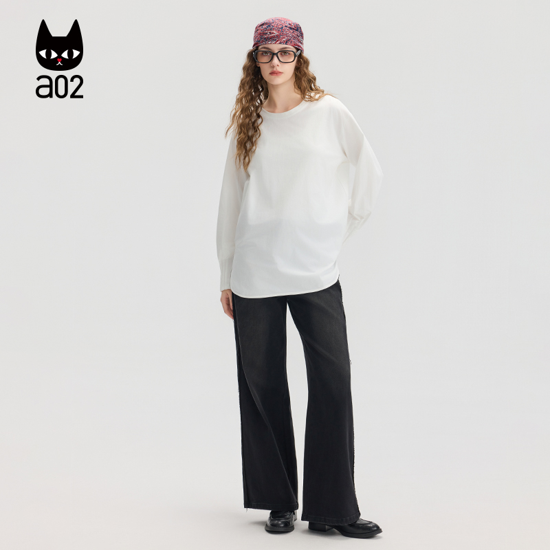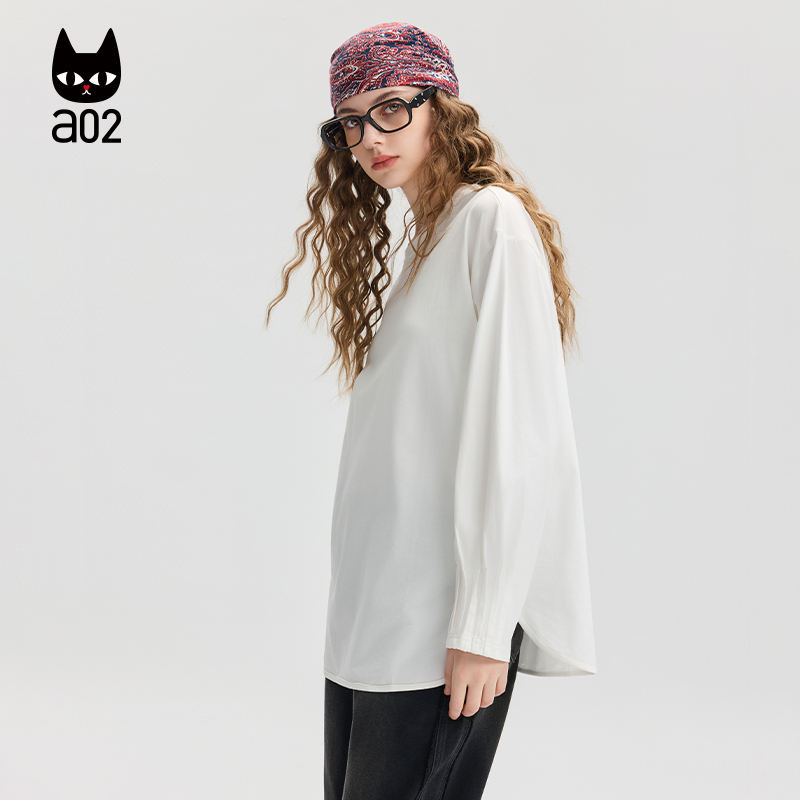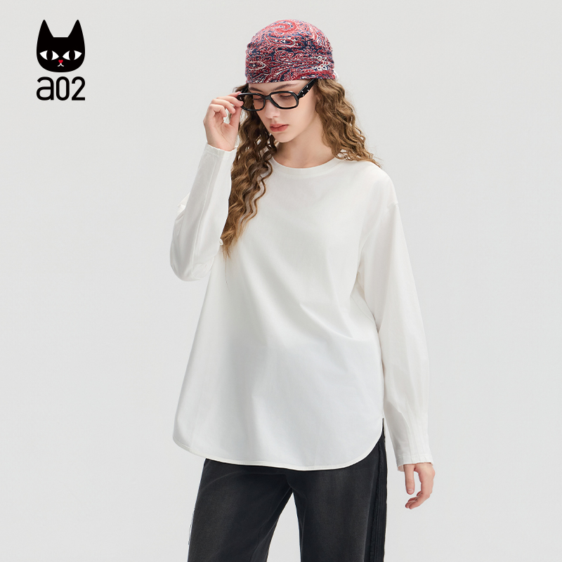圆领打底衫 秋季 上衣通勤穿搭 T恤女2025新款 a02宽松纯棉白色长袖