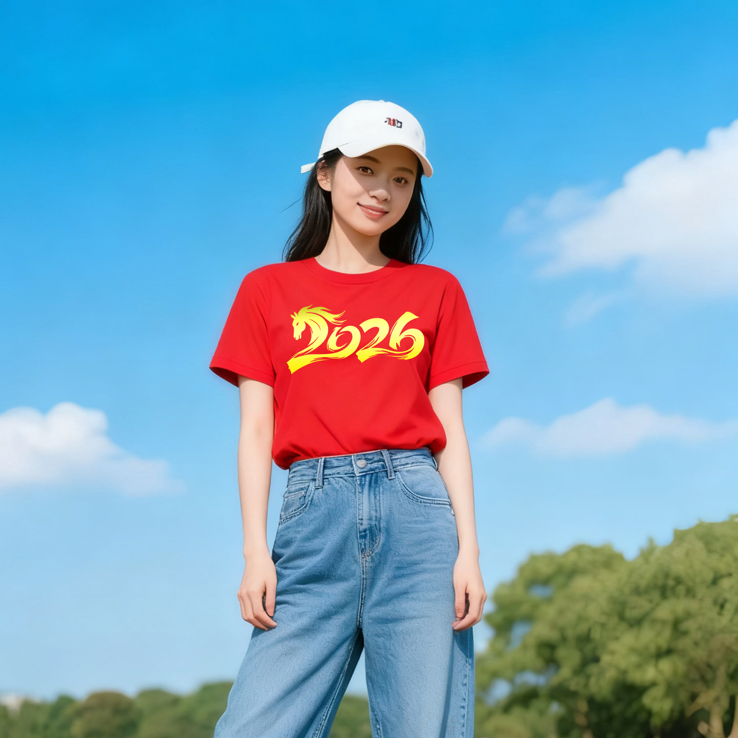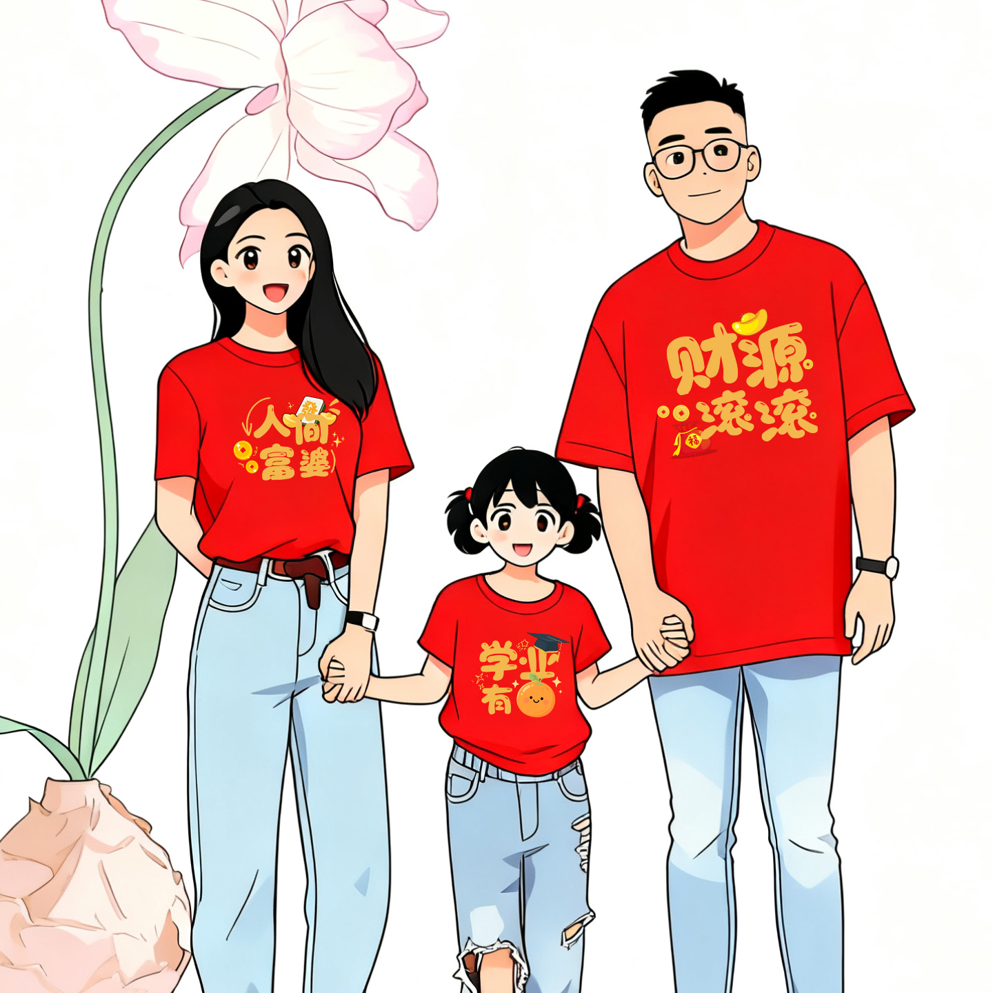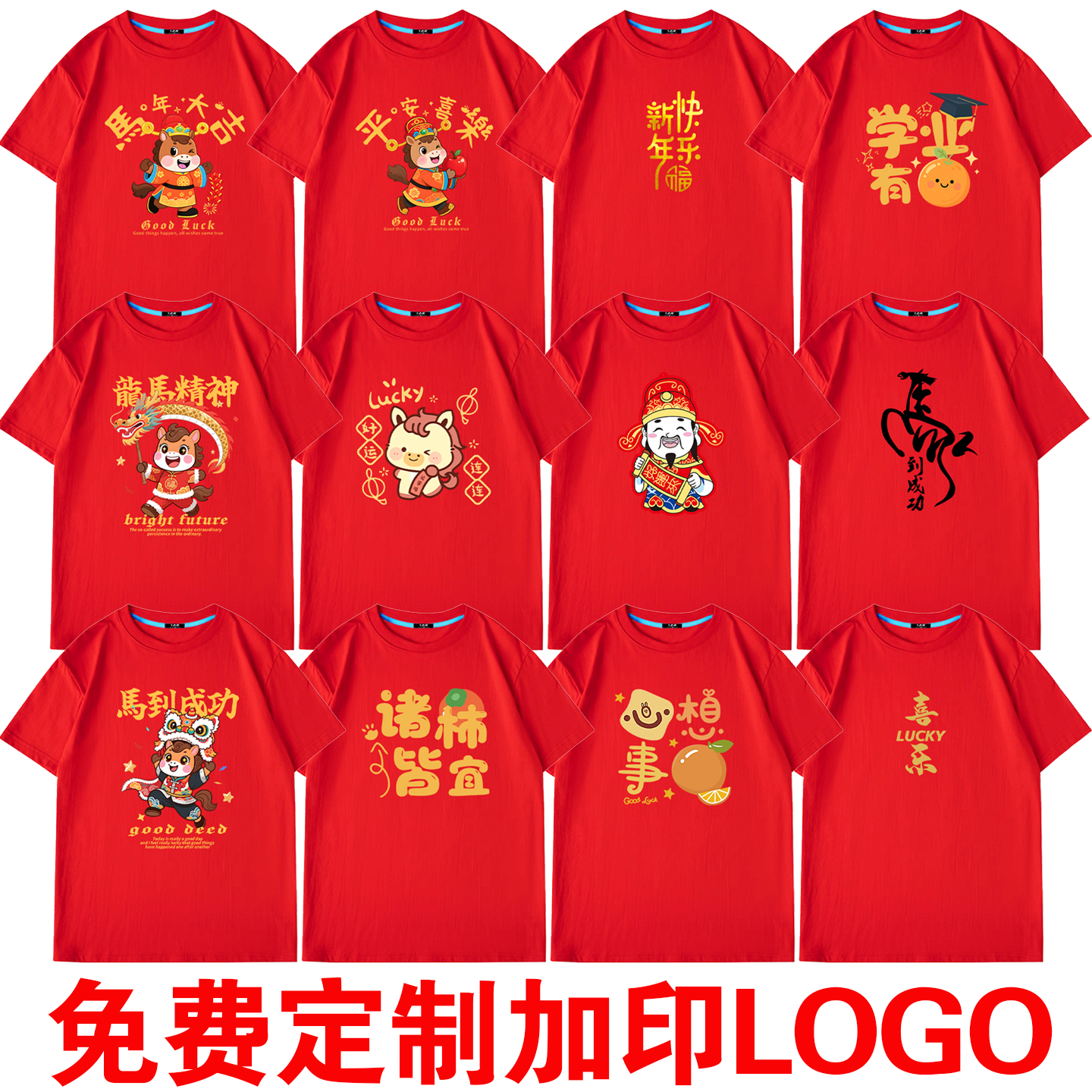旦年会活动新年全家聚会衣服 元 2026马年亲子装 t恤本命年红色短袖