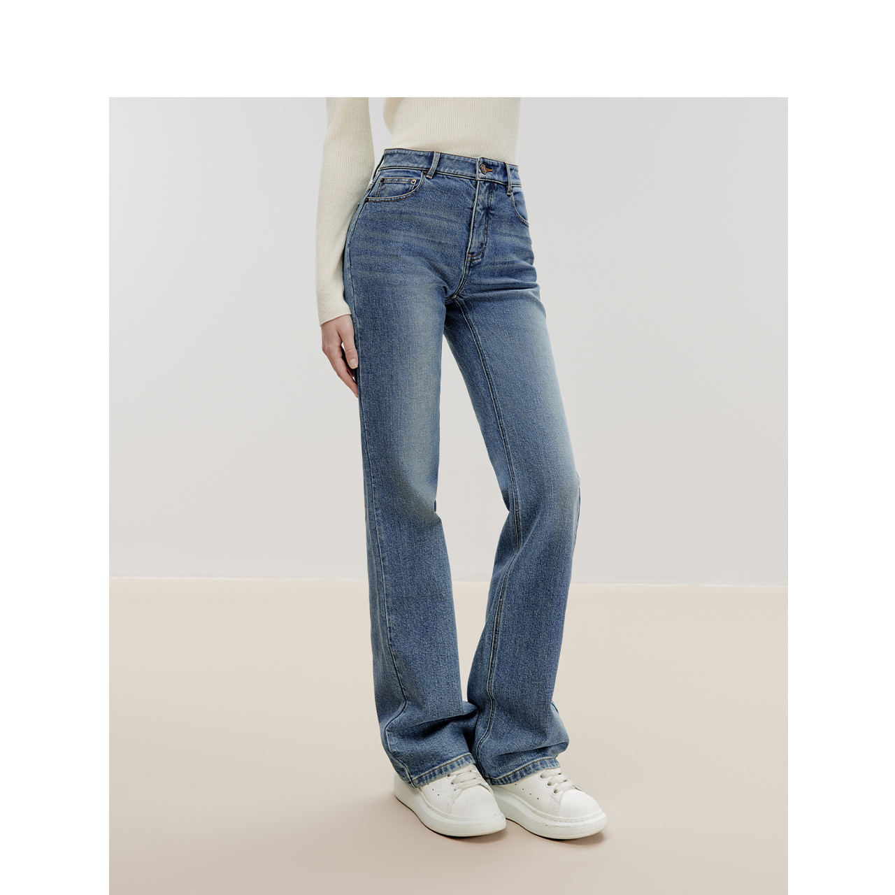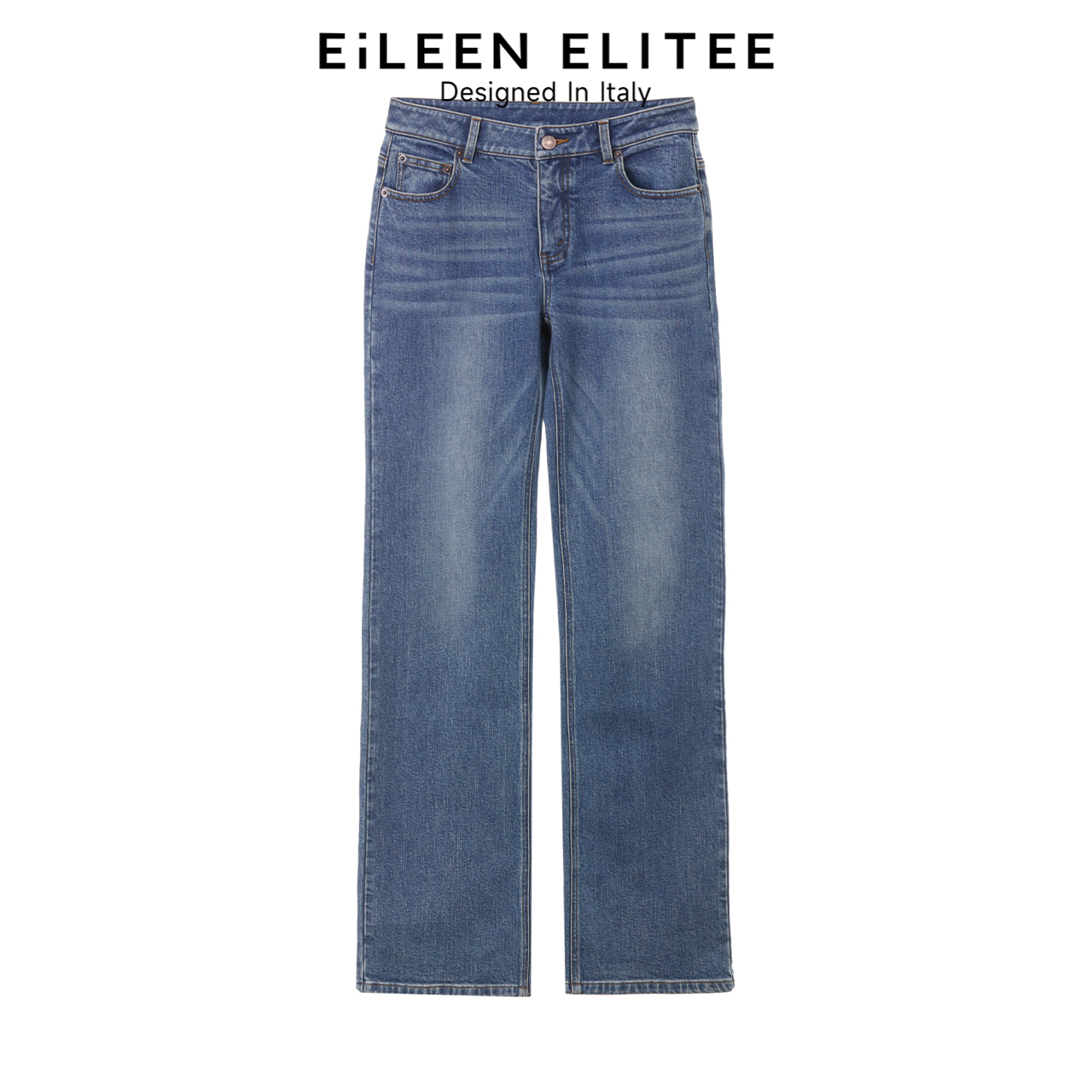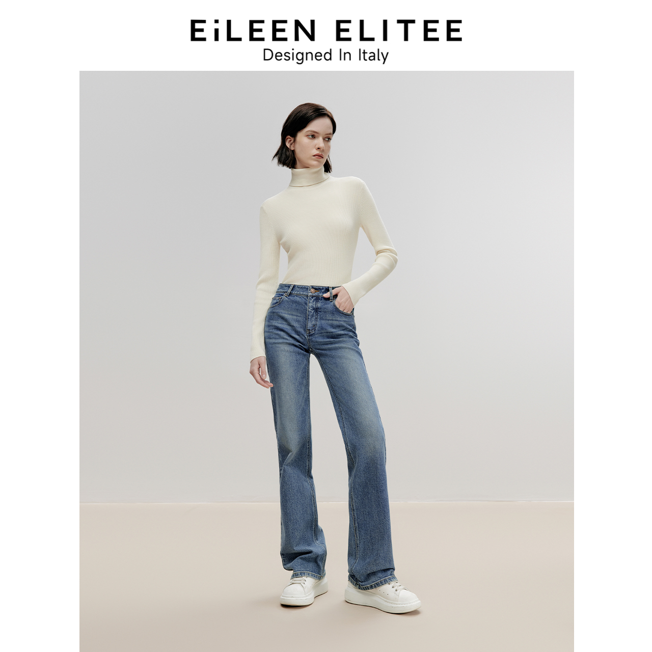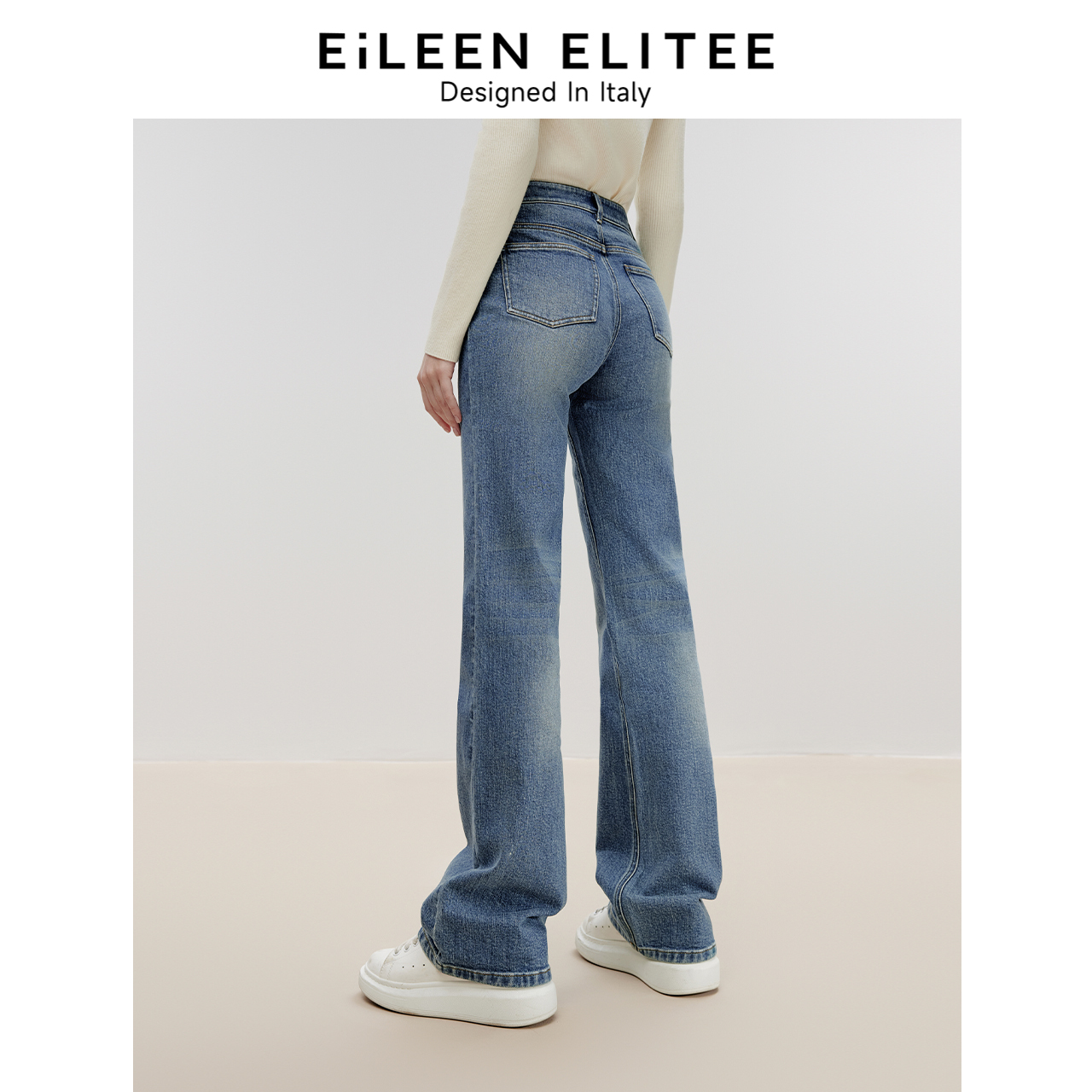 新款 朗姿欧洲EiLEEN 休闲气质直筒2024冬季 长裤 ELITEE棉质牛仔裤