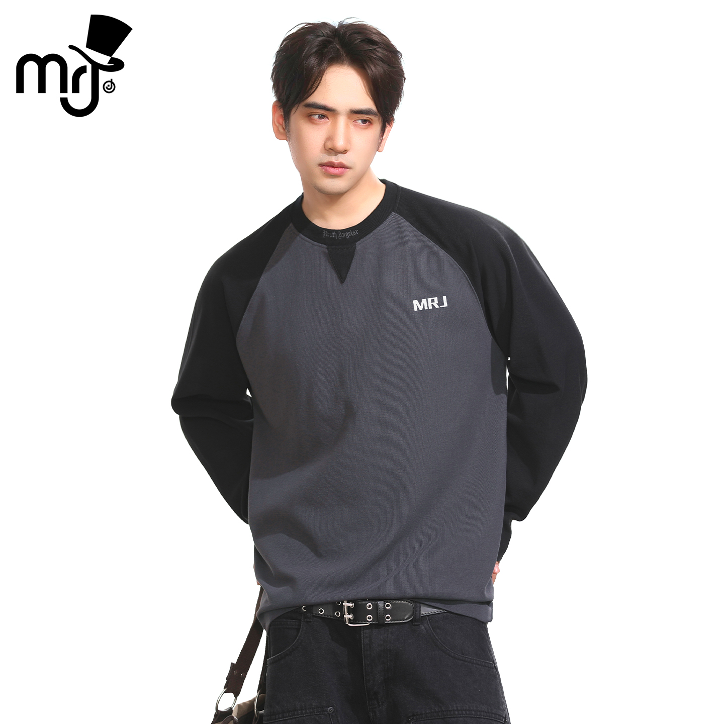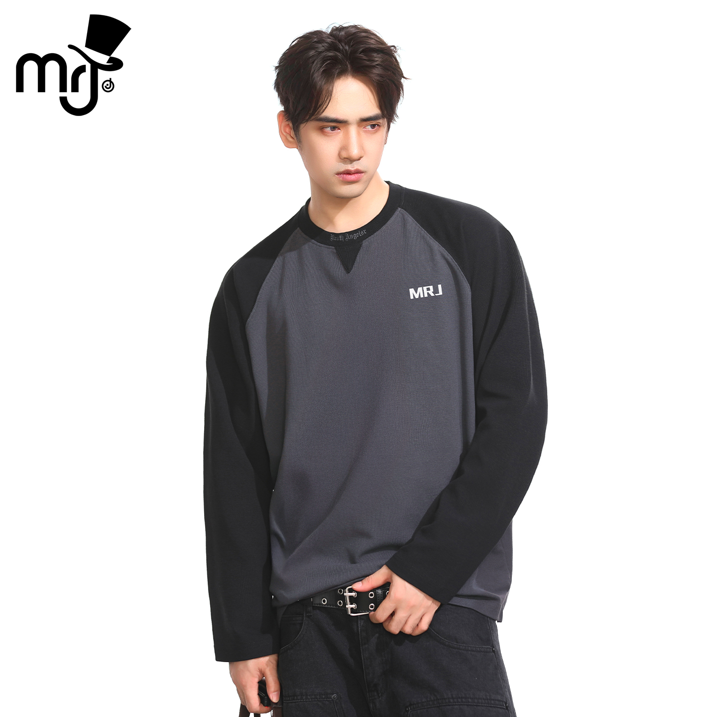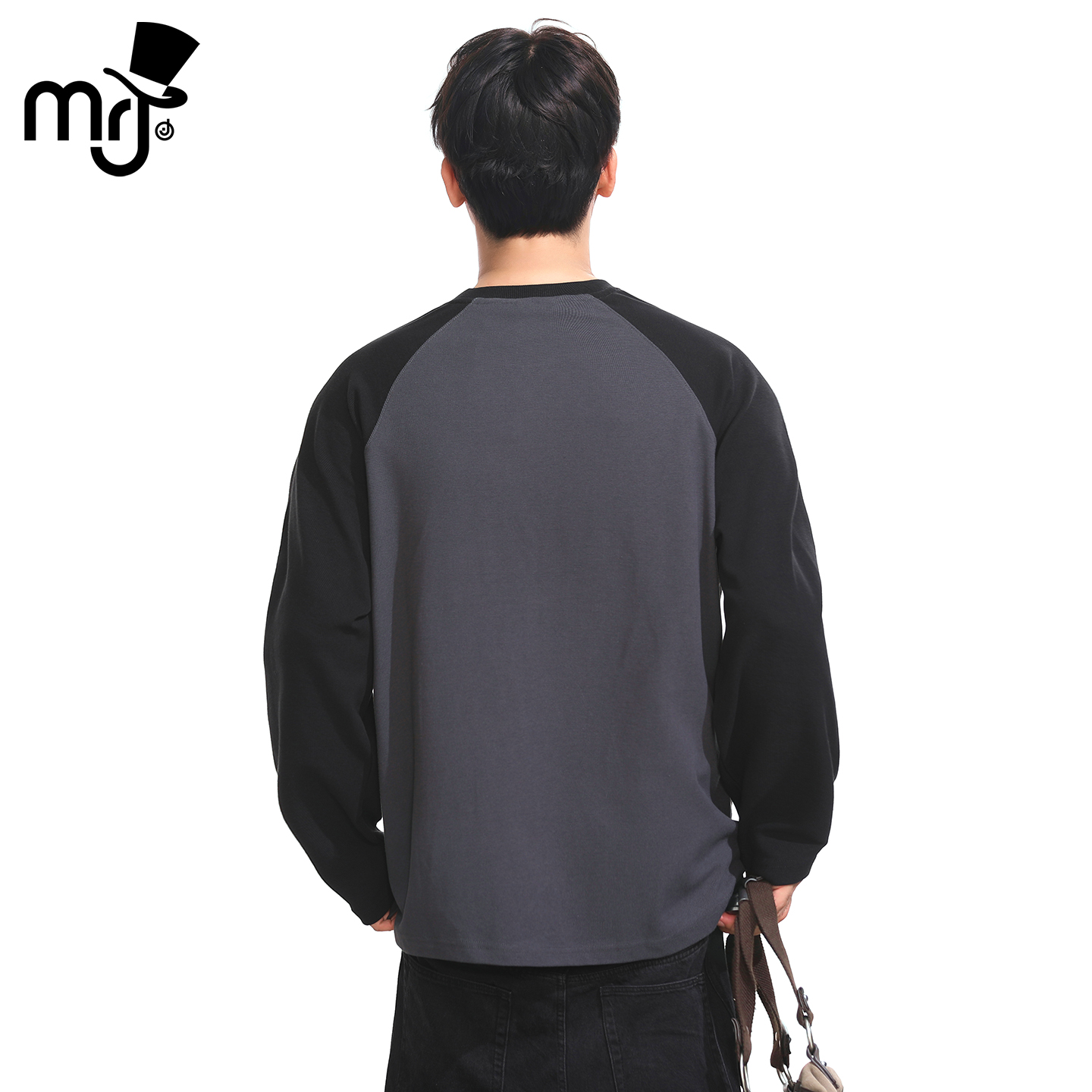 拼接设计感插肩体恤上衣服 春秋季 MRJ周杰伦华夫格重磅长袖 t恤男士