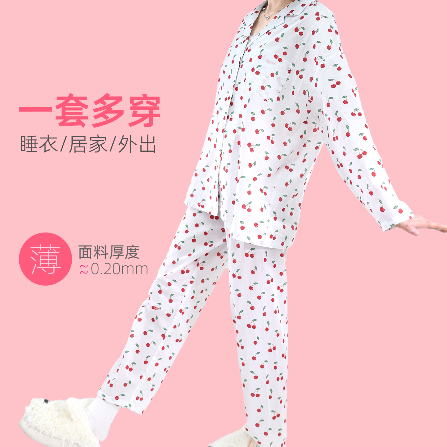 中腰可外穿秋款 女士睡衣套装 家居服可爱印花宽松大码 长裤 纯棉长袖