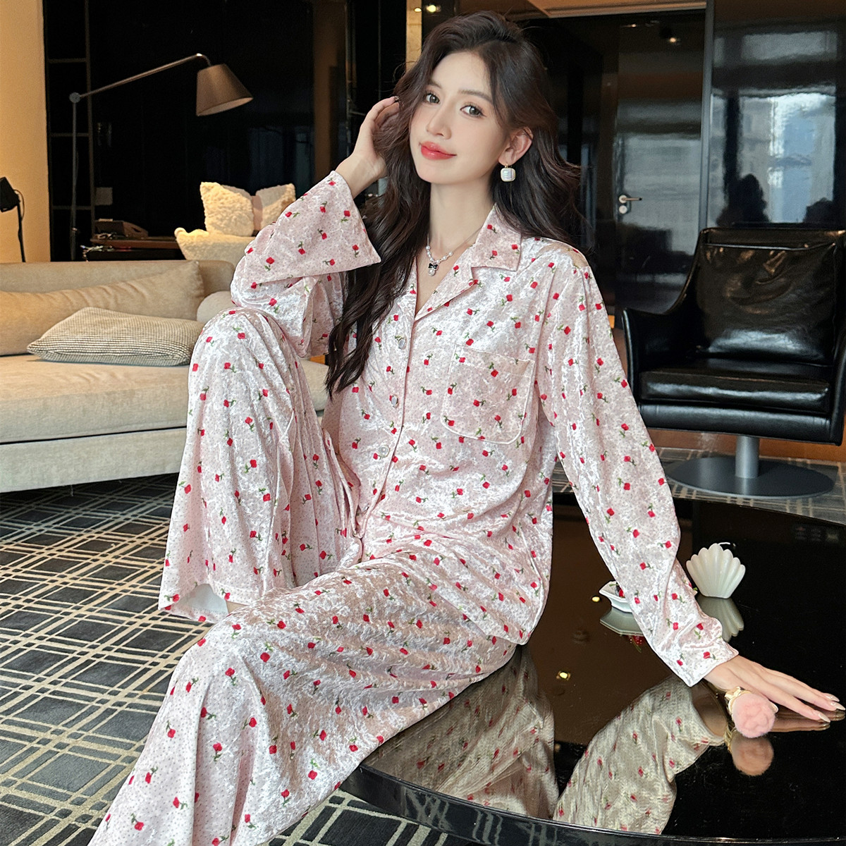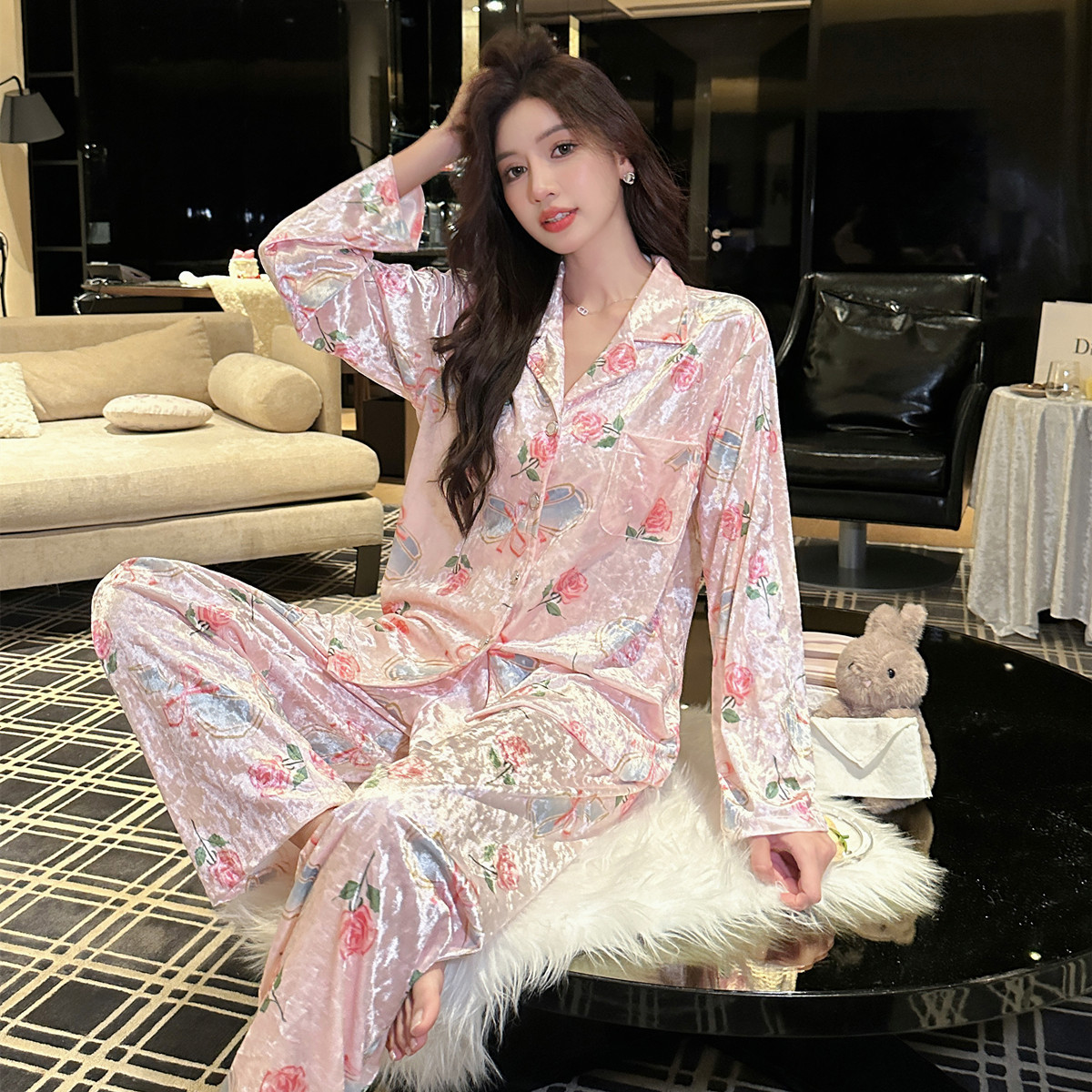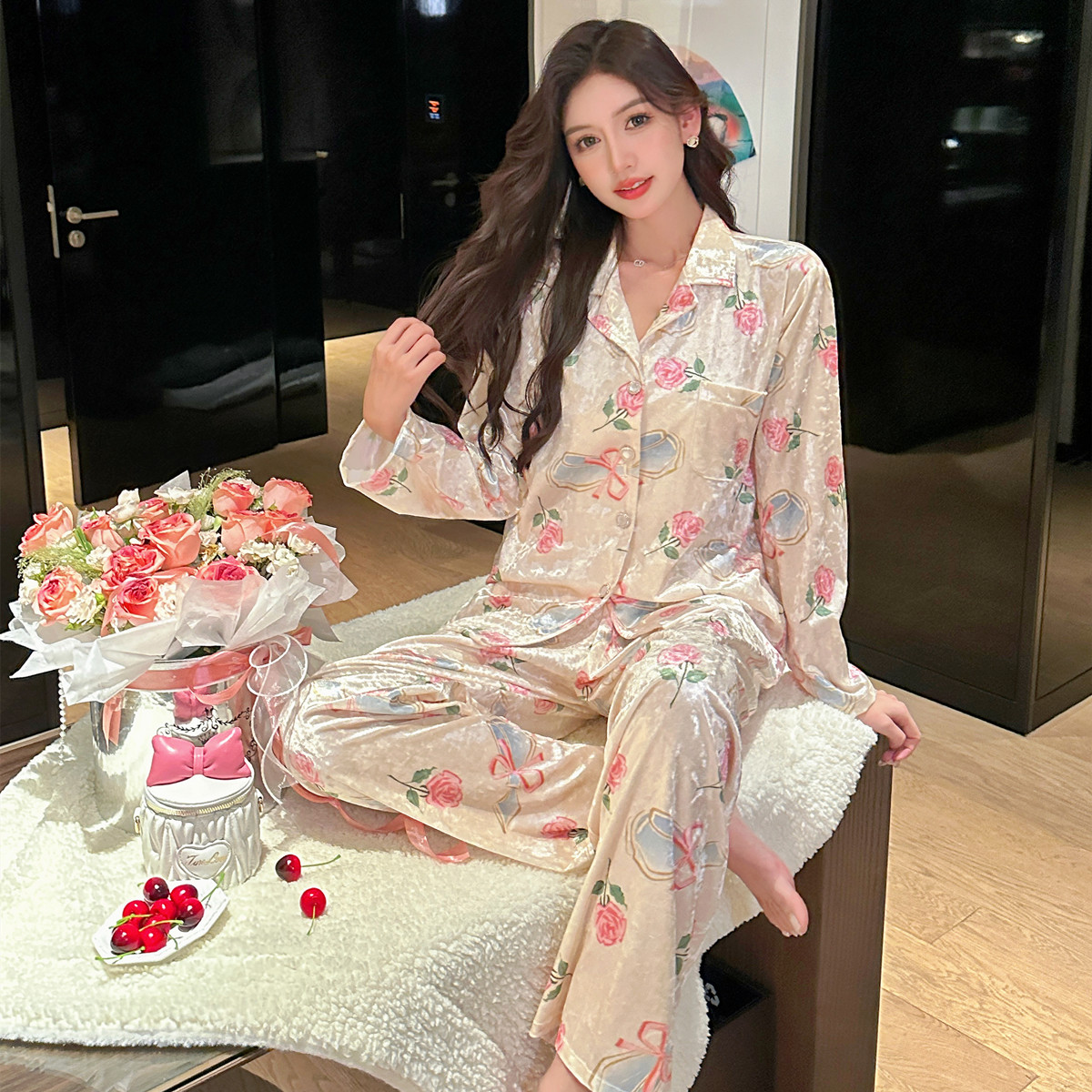 冬 加绒加厚甜美蝴蝶法兰绒家居服套装 珊瑚绒睡衣女款 秋冬2025新款