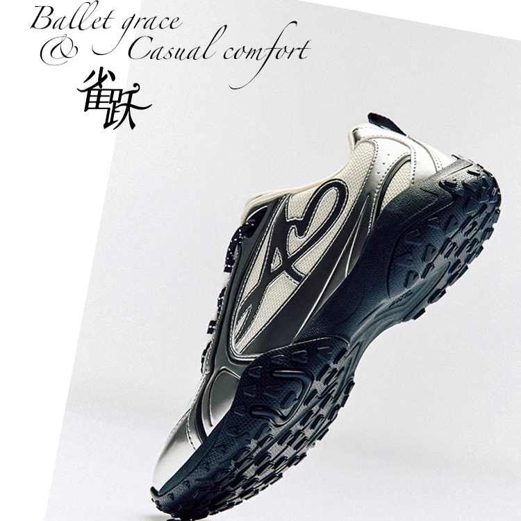 芭蕾风银色休闲鞋 薄底潮流百搭运动鞋 女鞋 新款 2025秋季 安踏雀跃