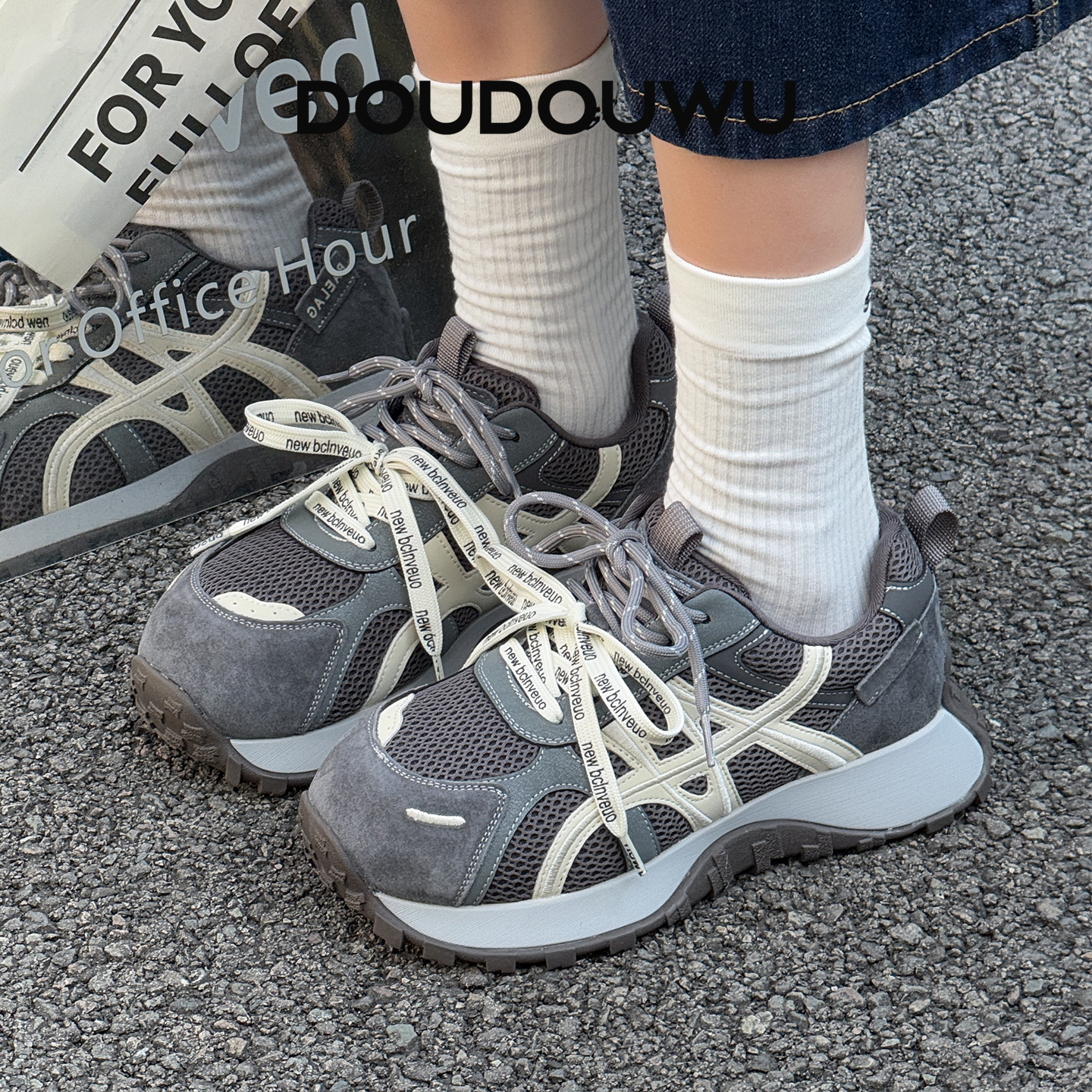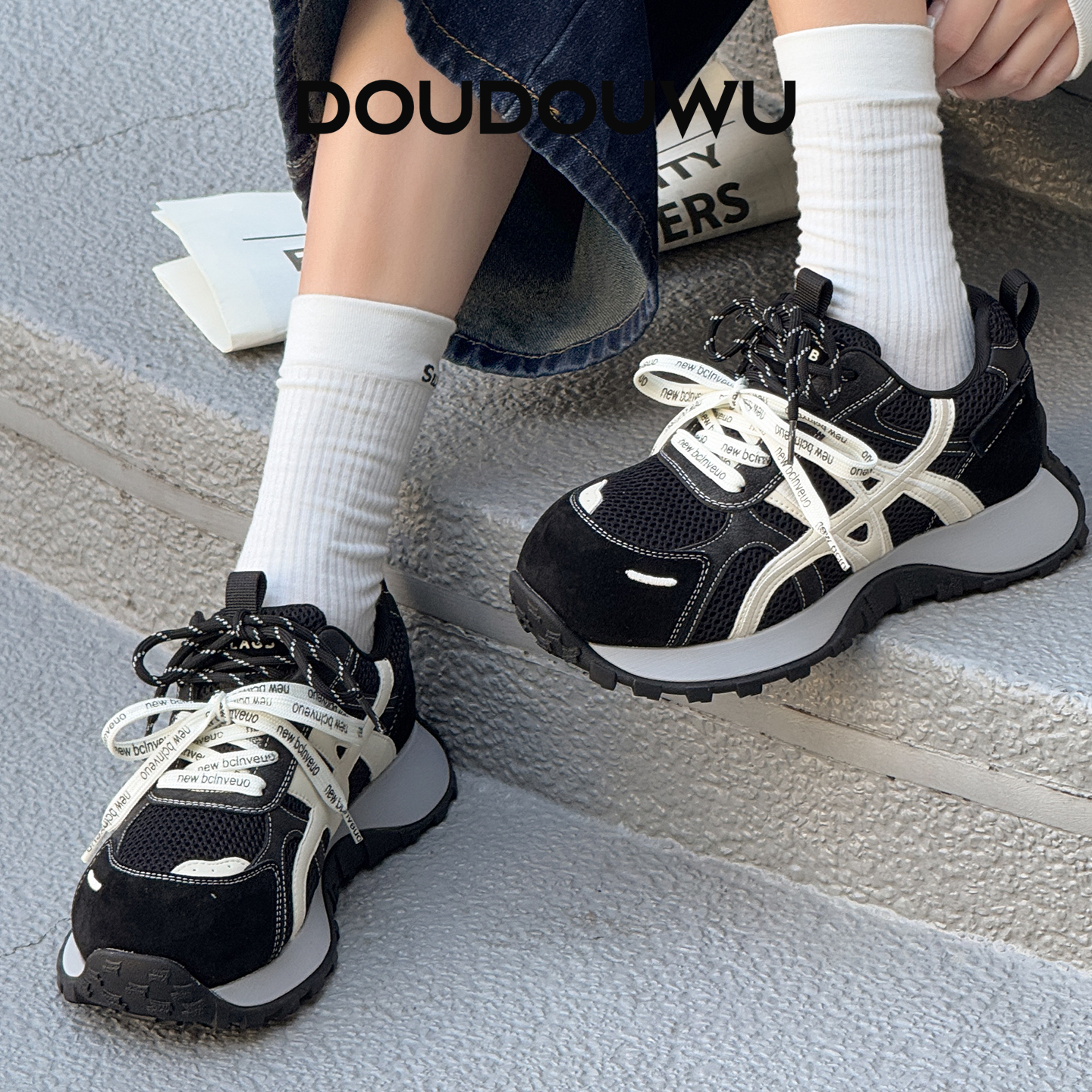 潮运动休闲松糕中跟百搭女鞋 豆豆屋厚底阿甘鞋 韩版 新款 女2025秋季