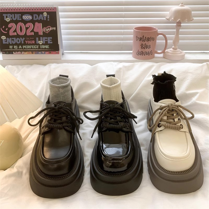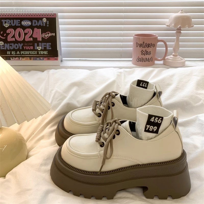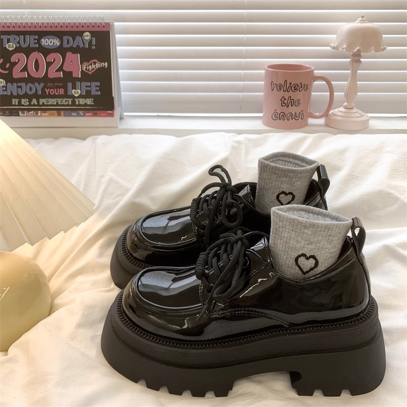粗跟厚底增高小个子乐福单鞋 新款 女2025春季 复古英伦风黑色小皮鞋