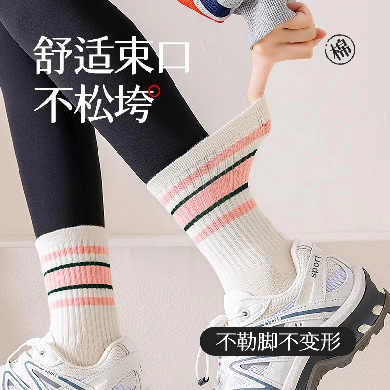 爆款 2025新款 无骨防臭中筒运动袜 短袜纯棉春秋季 棉竹屋袜子女款