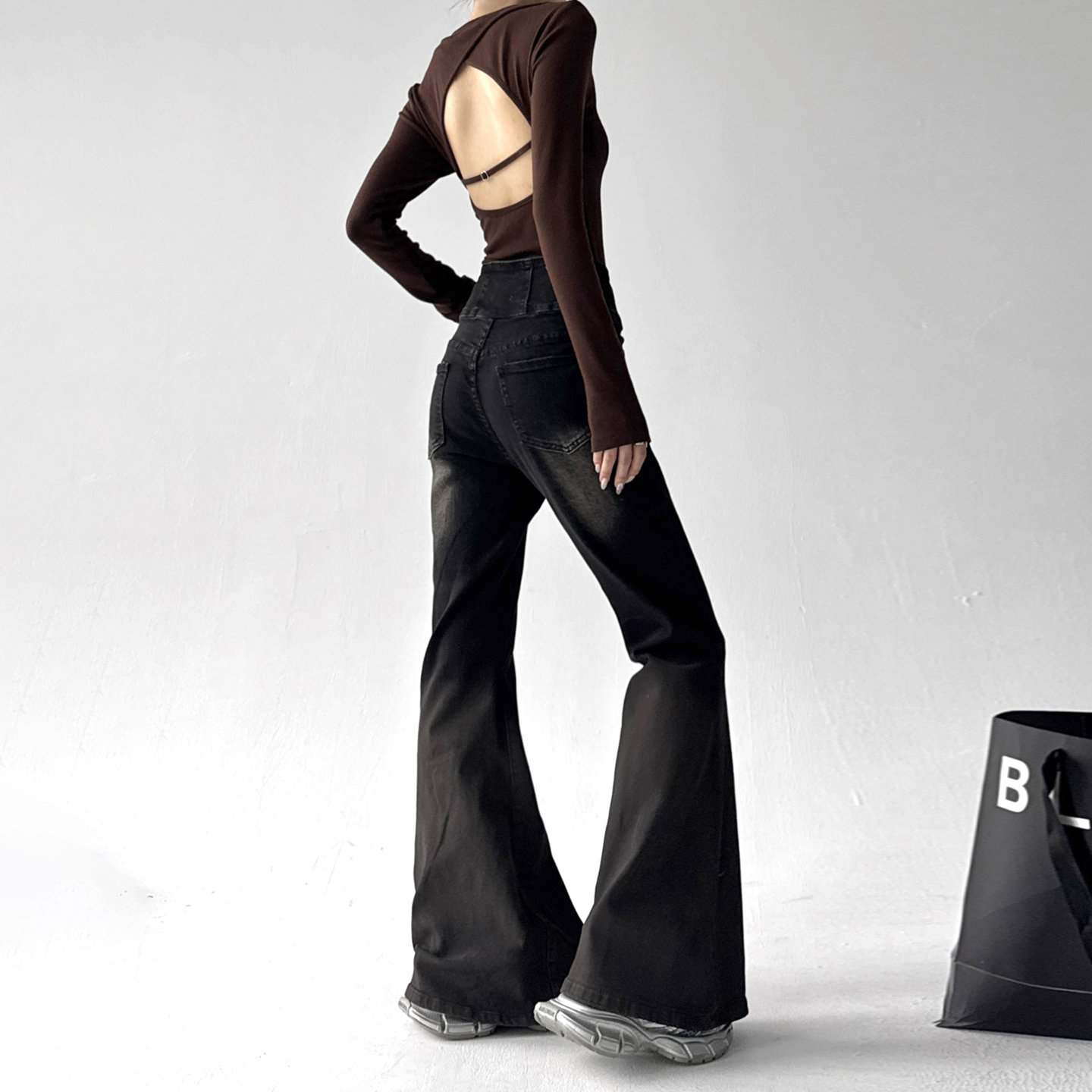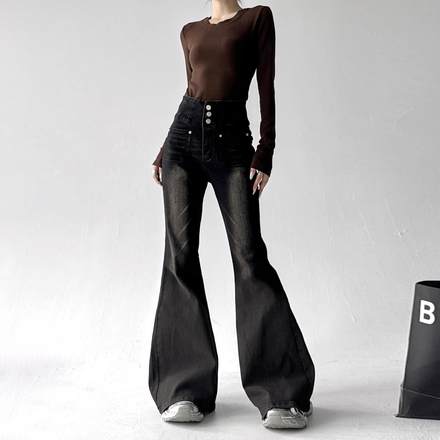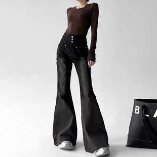 弹微喇休闲裤 超火2025秋季 女复古高腰显瘦百搭修身 简约牛仔裤 新款