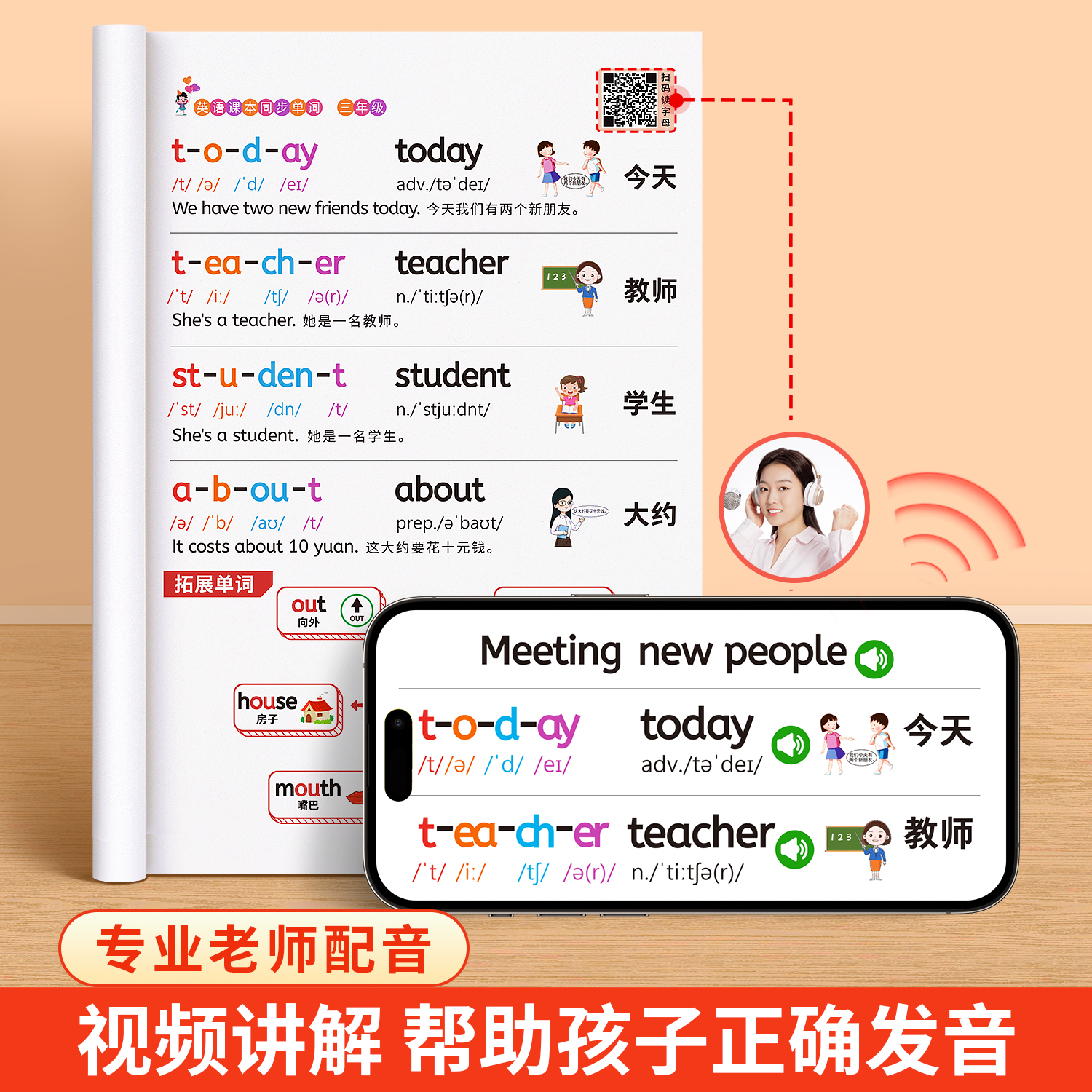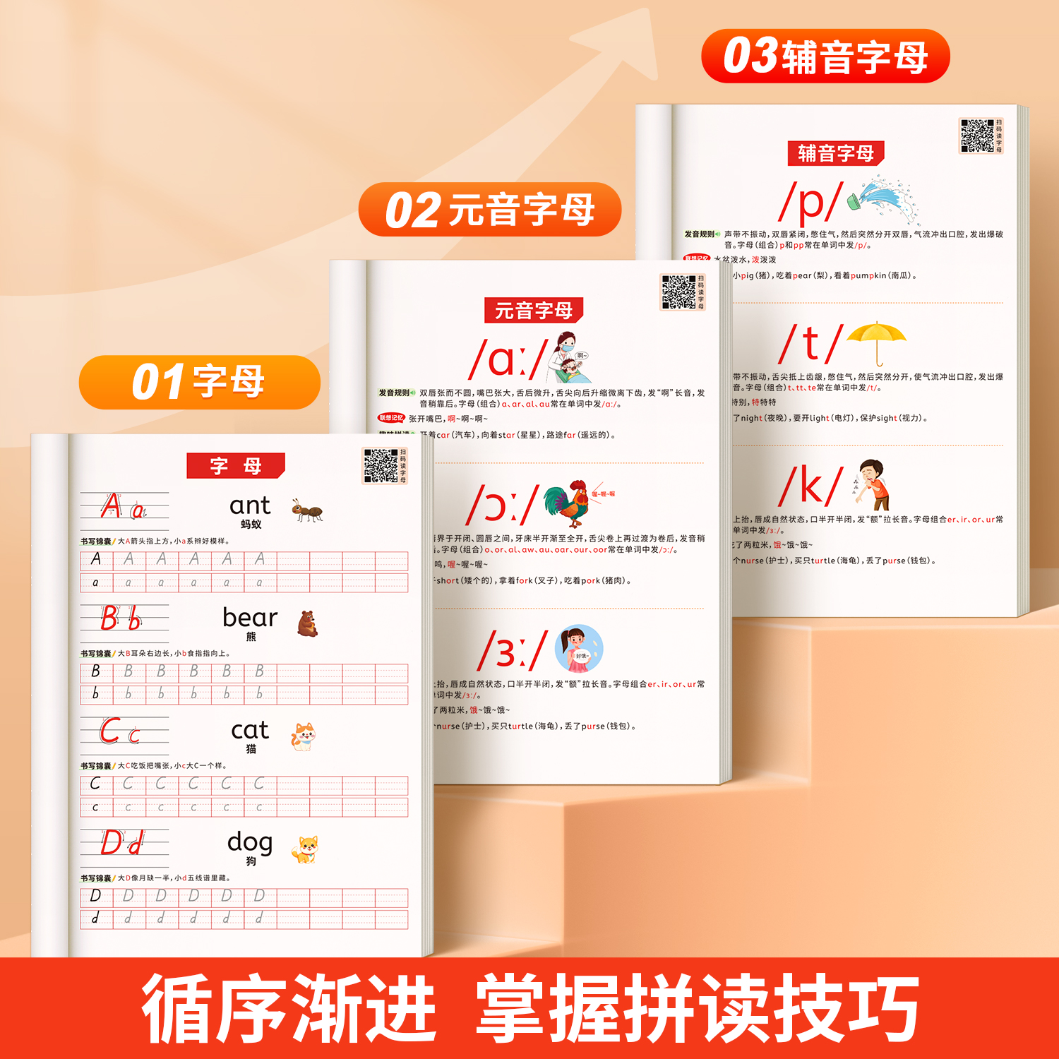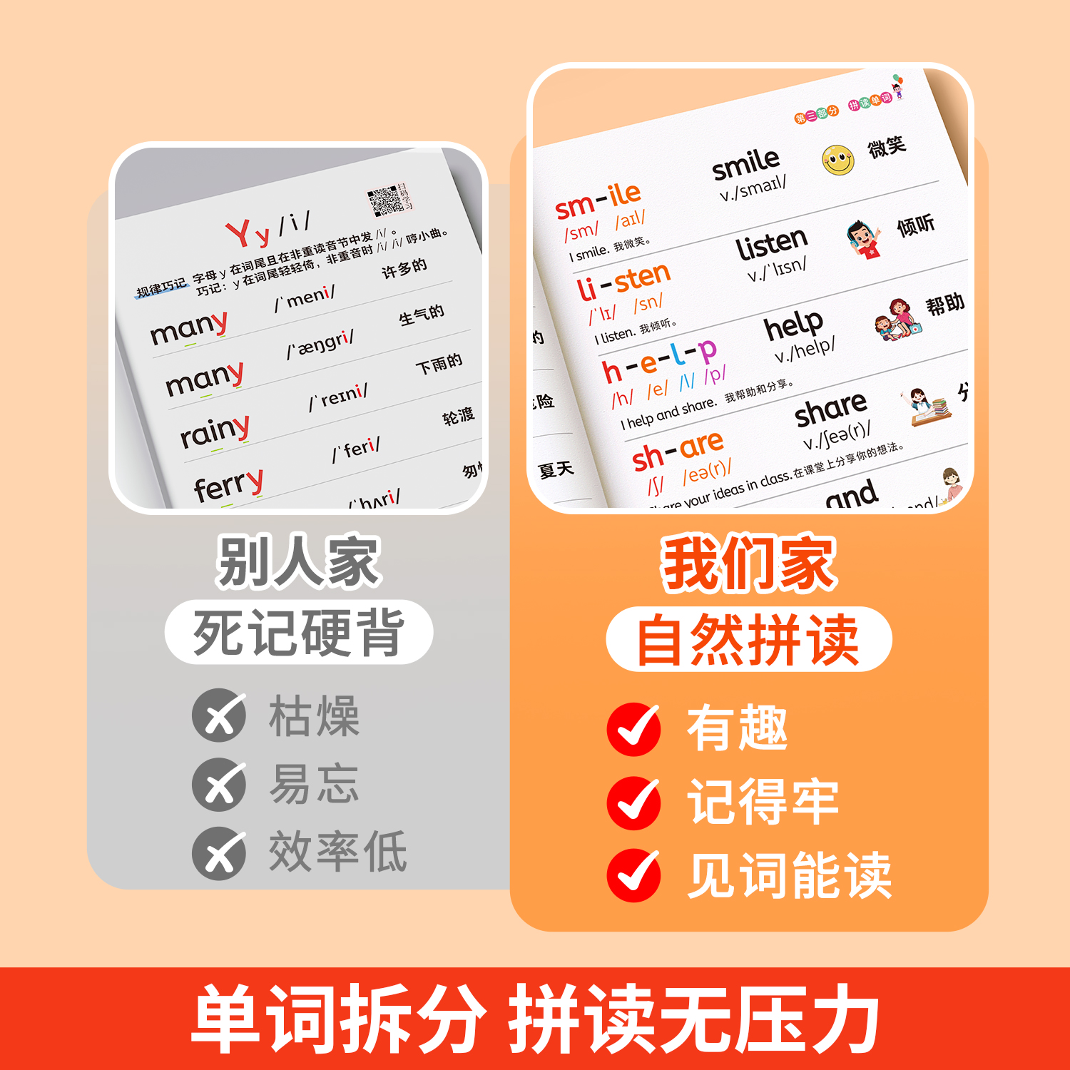 三年级英语自然拼读教材上册下册同步音标入门自学零基础小学记单词大全一本通单词记背神器早教轻松背单词音标和26个字母每日一练