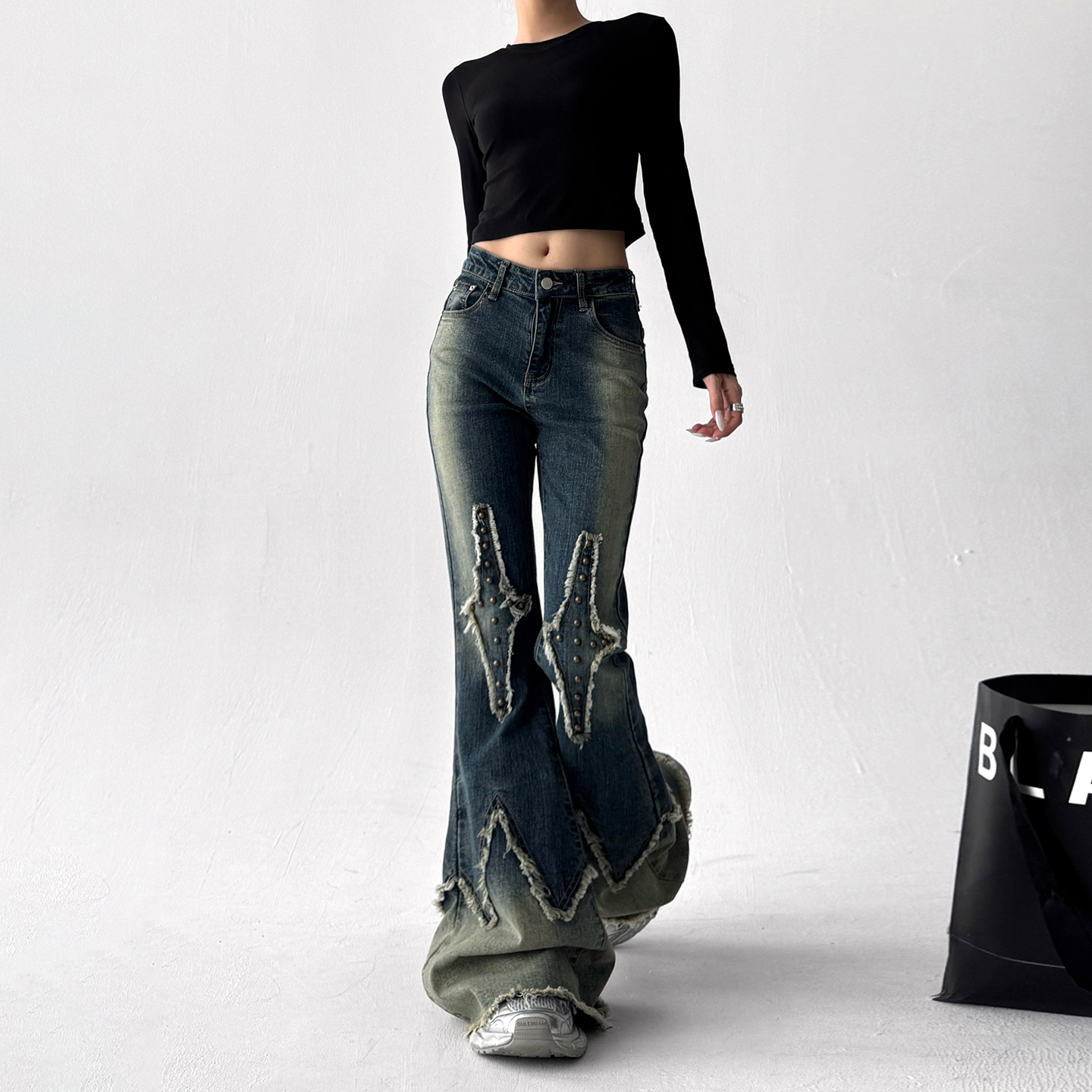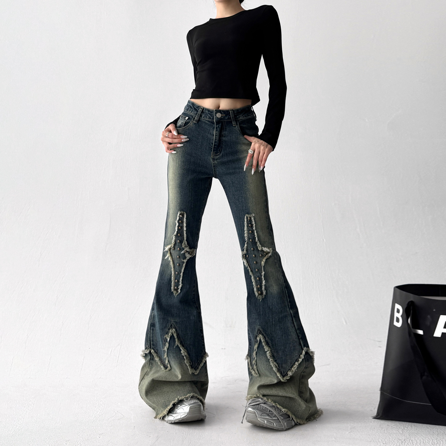 显瘦休闲裤 2025超火秋装 女今年流行修身 蝴蝶毛边微喇叭牛仔裤 新款