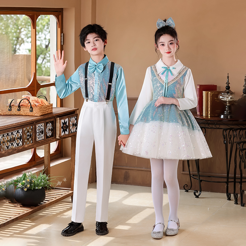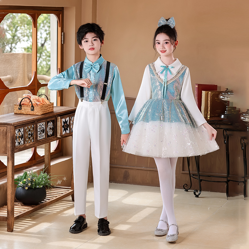 新款 儿童中小学生合唱服男女童比赛礼服演出服表演朗诵比赛演出服