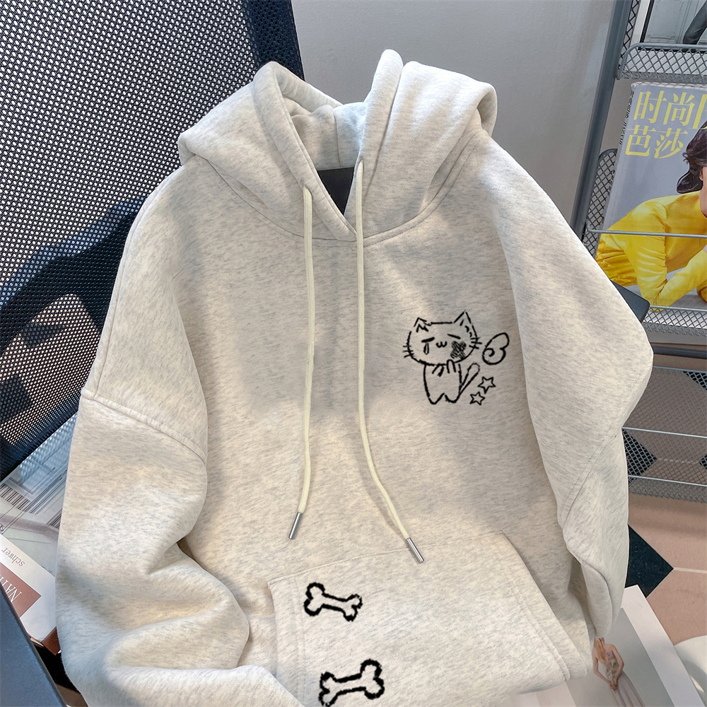中大童卡通涂鸦印花卫衣男女童秋冬加绒加厚儿童连帽衫 外套上衣服