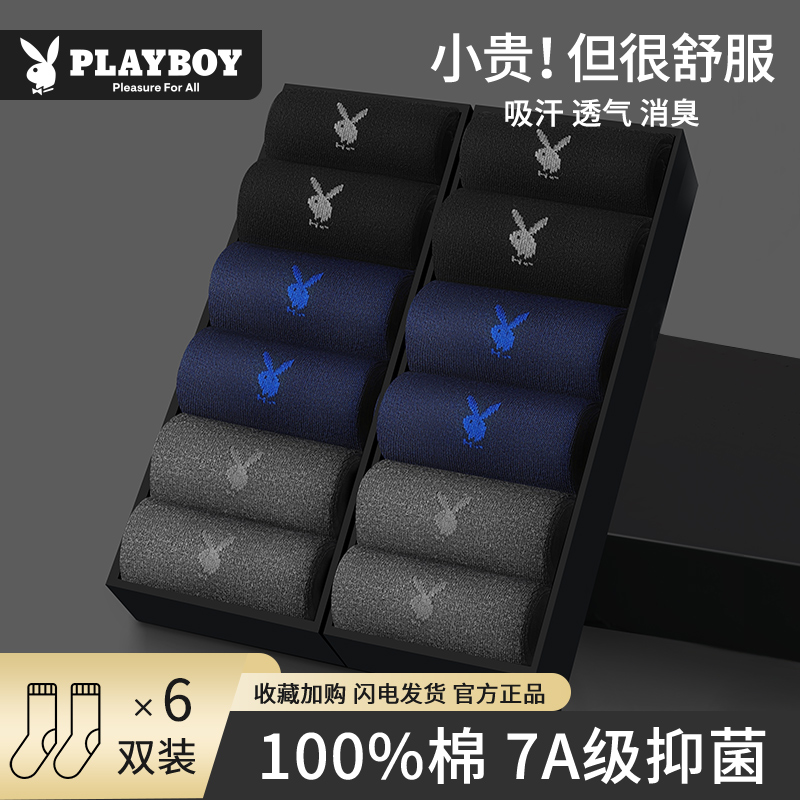 商务长袜 纯棉防臭中筒袜吸汗透气2025年秋季 花花公子男士 袜子男款