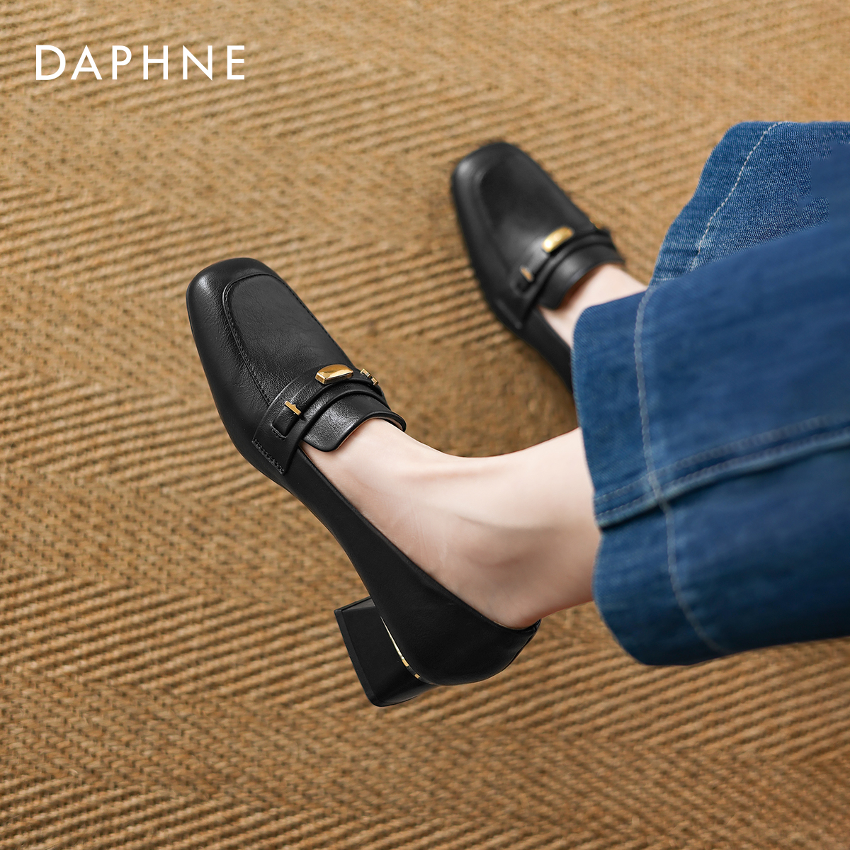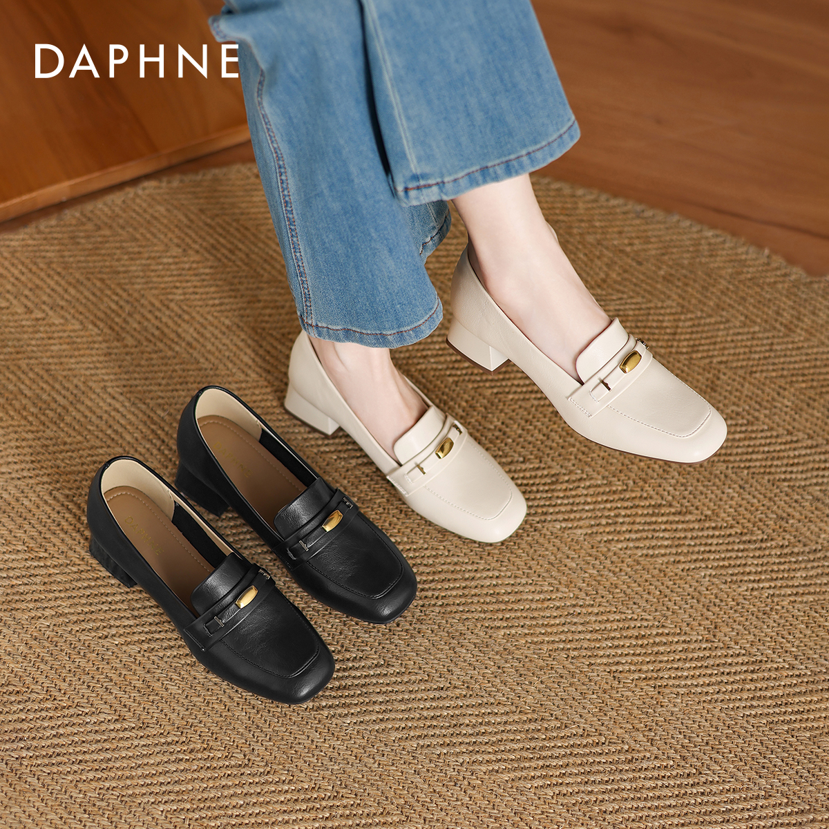 子英伦风秋季 达芙妮方头一脚蹬粗跟乐福鞋 小皮鞋 女士女款 2025新款