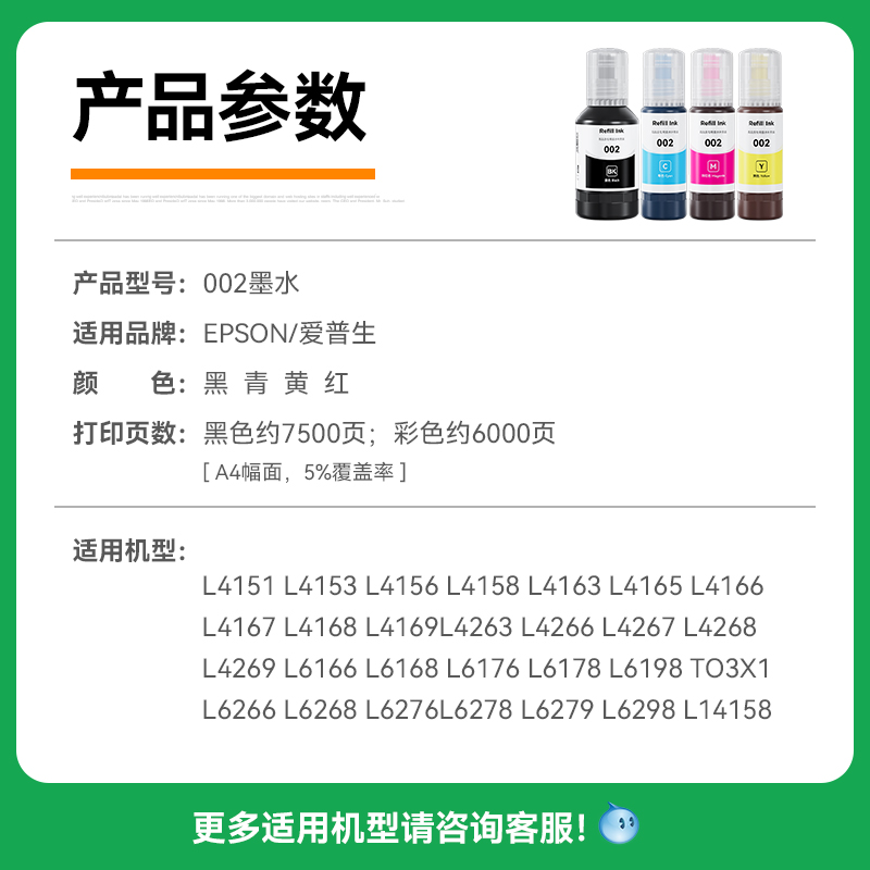 L3256 3250喷墨打印机彩色 L3156 L3253 L3255 L3251 L3153 L3158 L3258 EPSON爱普生004原装 L3267 墨水L3151