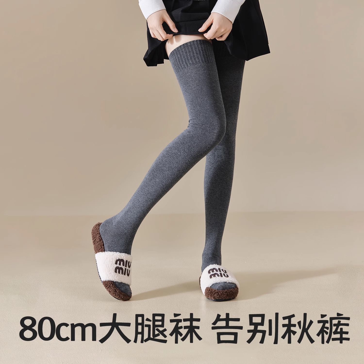 过膝袜子女秋冬款 全棉纱线长筒袜加长保暖高筒护膝大腿袜春秋外穿