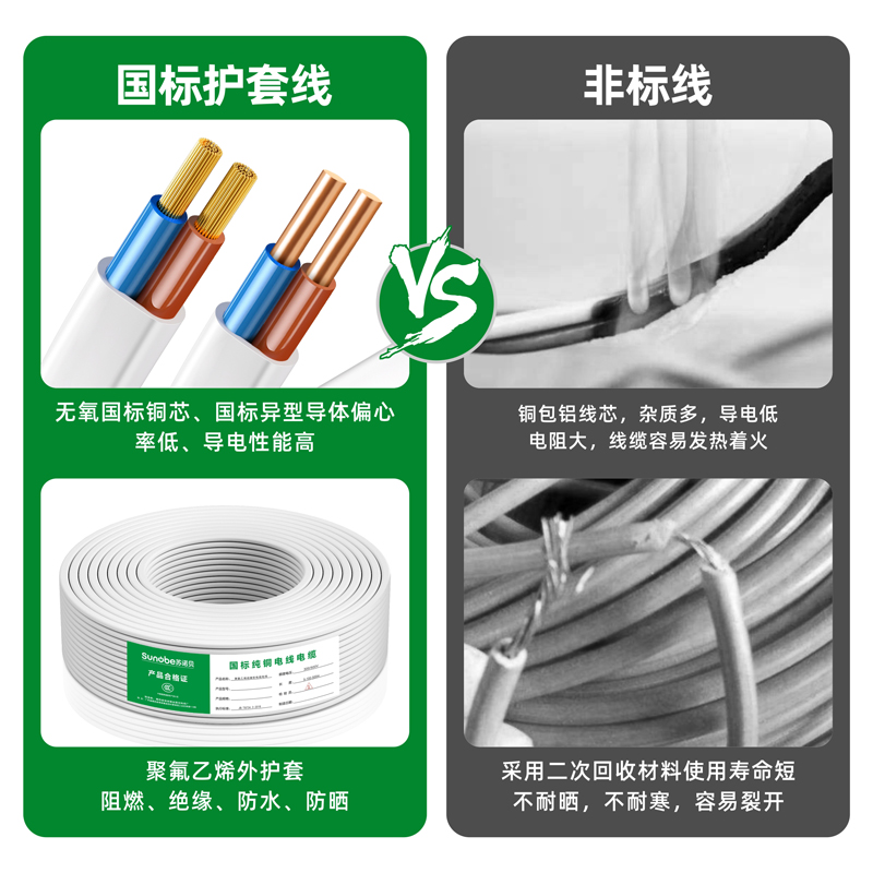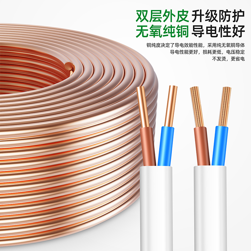 6平方家装 软线硬线 2.5 3C认证国标纯铜芯电线家用护套线2芯1.5