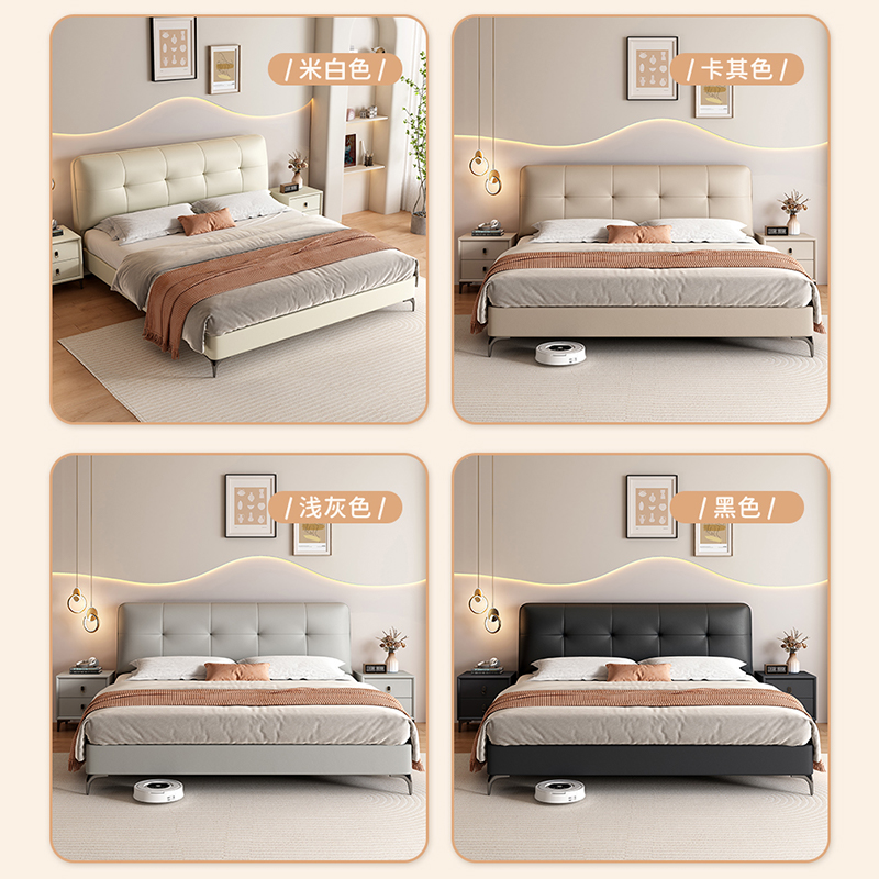 政府补贴馨佰利真皮床1米8双人大床2025新款 简约可储物卧室婚庆床