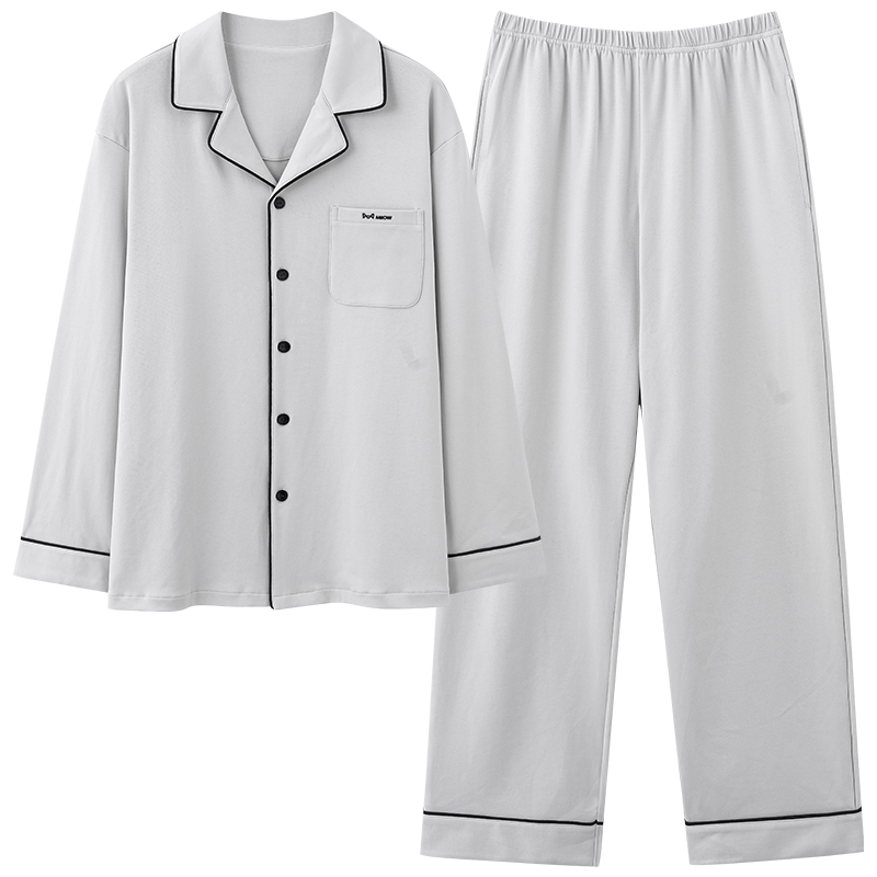 睡衣2025春秋新款 加服睡衣套装 长袖 简约休闲大码 长裤 猫人纯棉男士