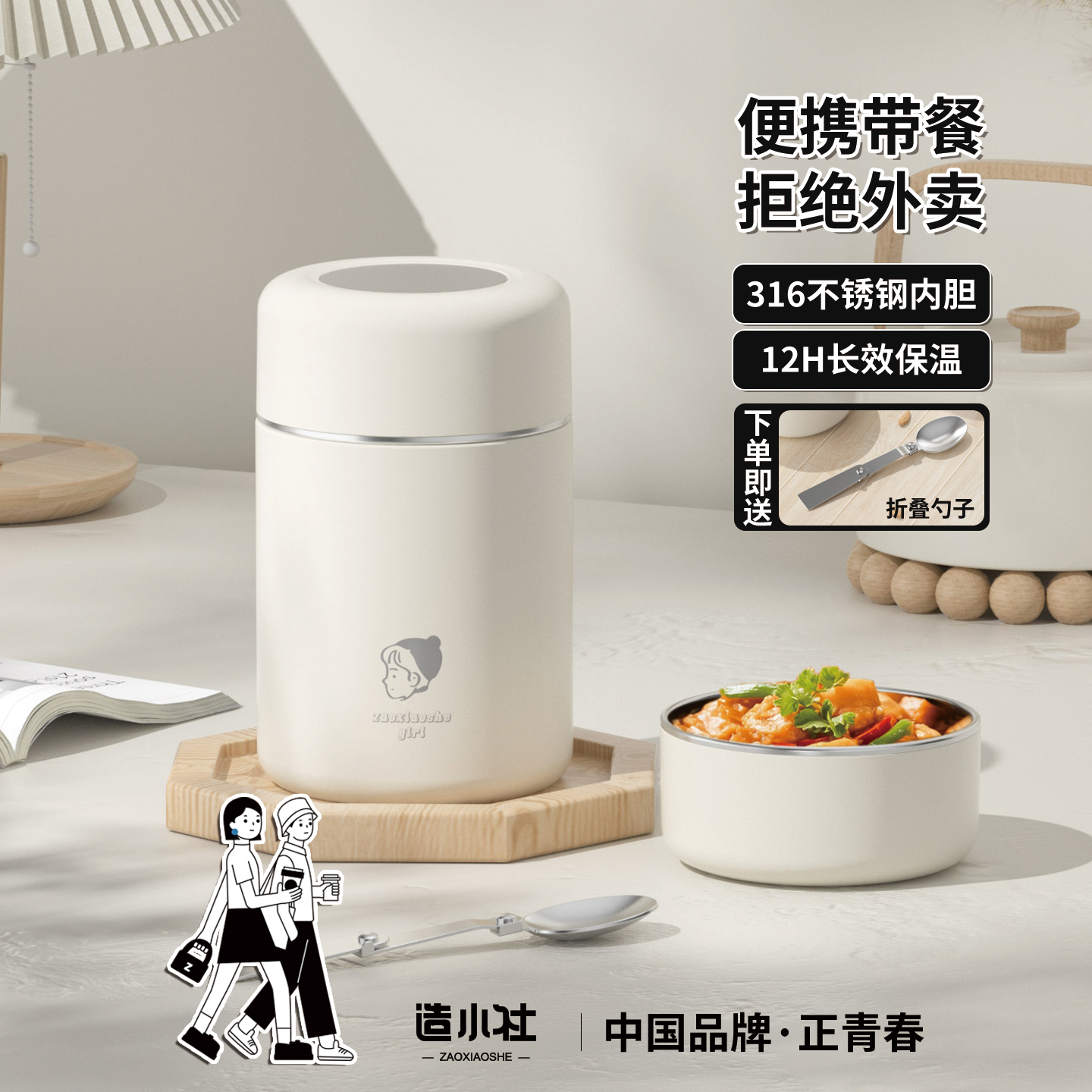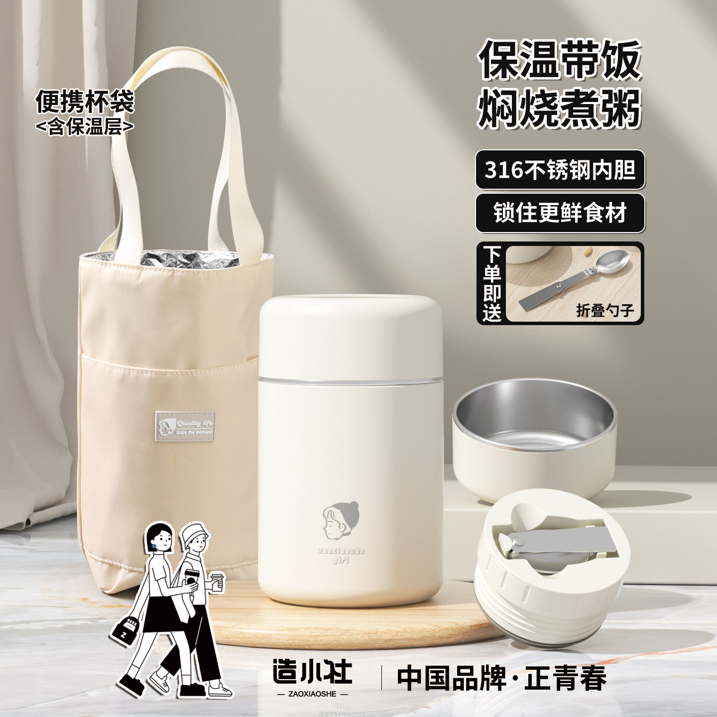 造小社316不锈钢焖烧杯高颜值女大容量保温饭盒上班族保温汤壶罐