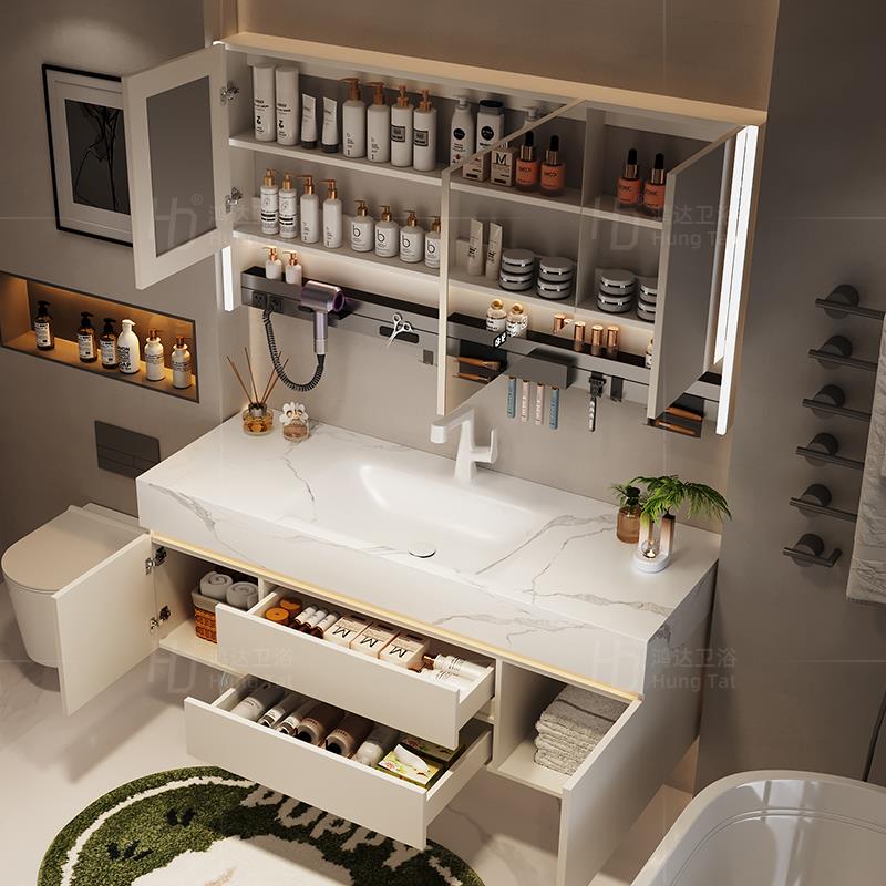 卫生间洗手脸盆池岩板热弯一体盆浴室柜组合卫浴柜洗漱台2025新款