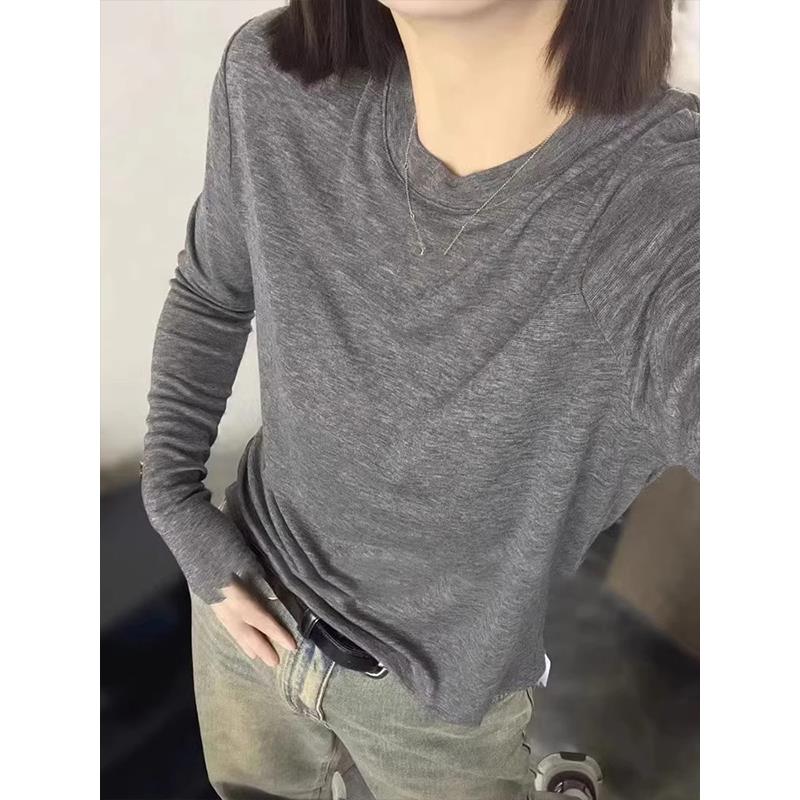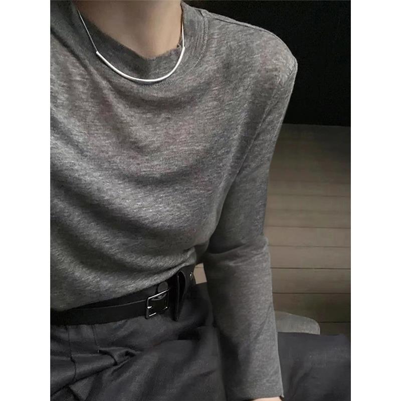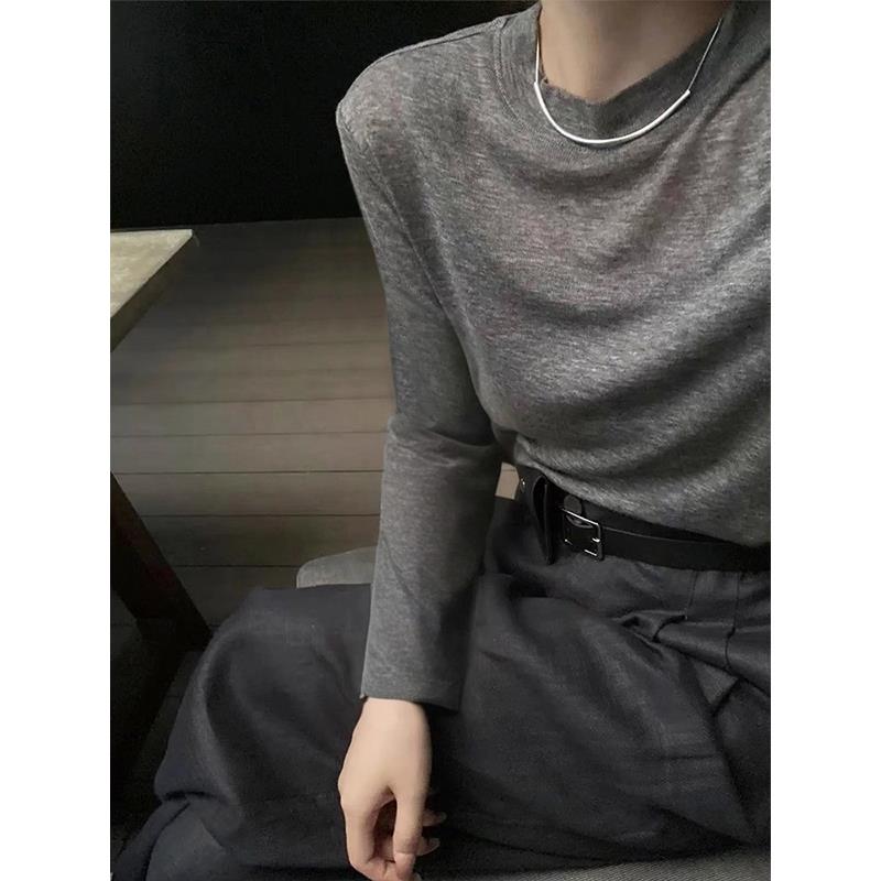 打底衫 修身 莱赛尔天丝T恤女亨利领长袖 紧身内搭上衣 Chapelle